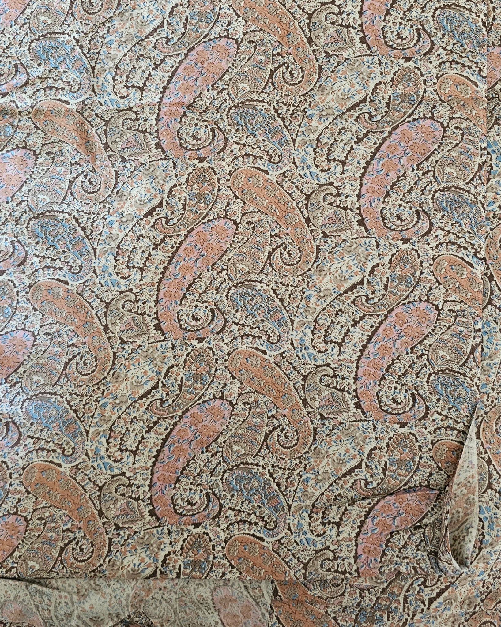 Fabric Cotton Flowy Vintage Paisley Brown Pink Blue Tan 1-4 Yards (sold by the yard)