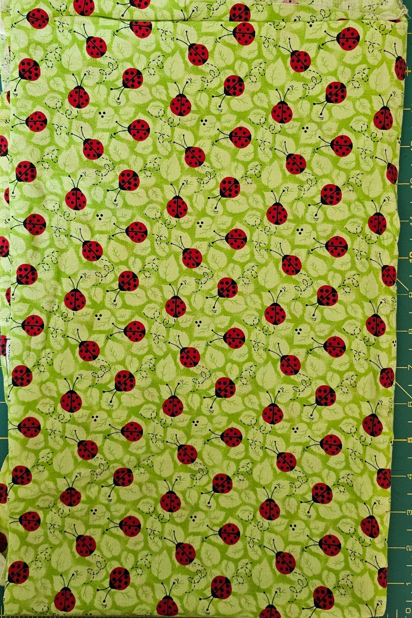 Fabric Cotton Ladybug Red Green Scant 1Yard Pre-washed