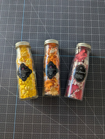 Got Flowers? Set of 3: Orange, Yellow & Red Faux Flower Bottles