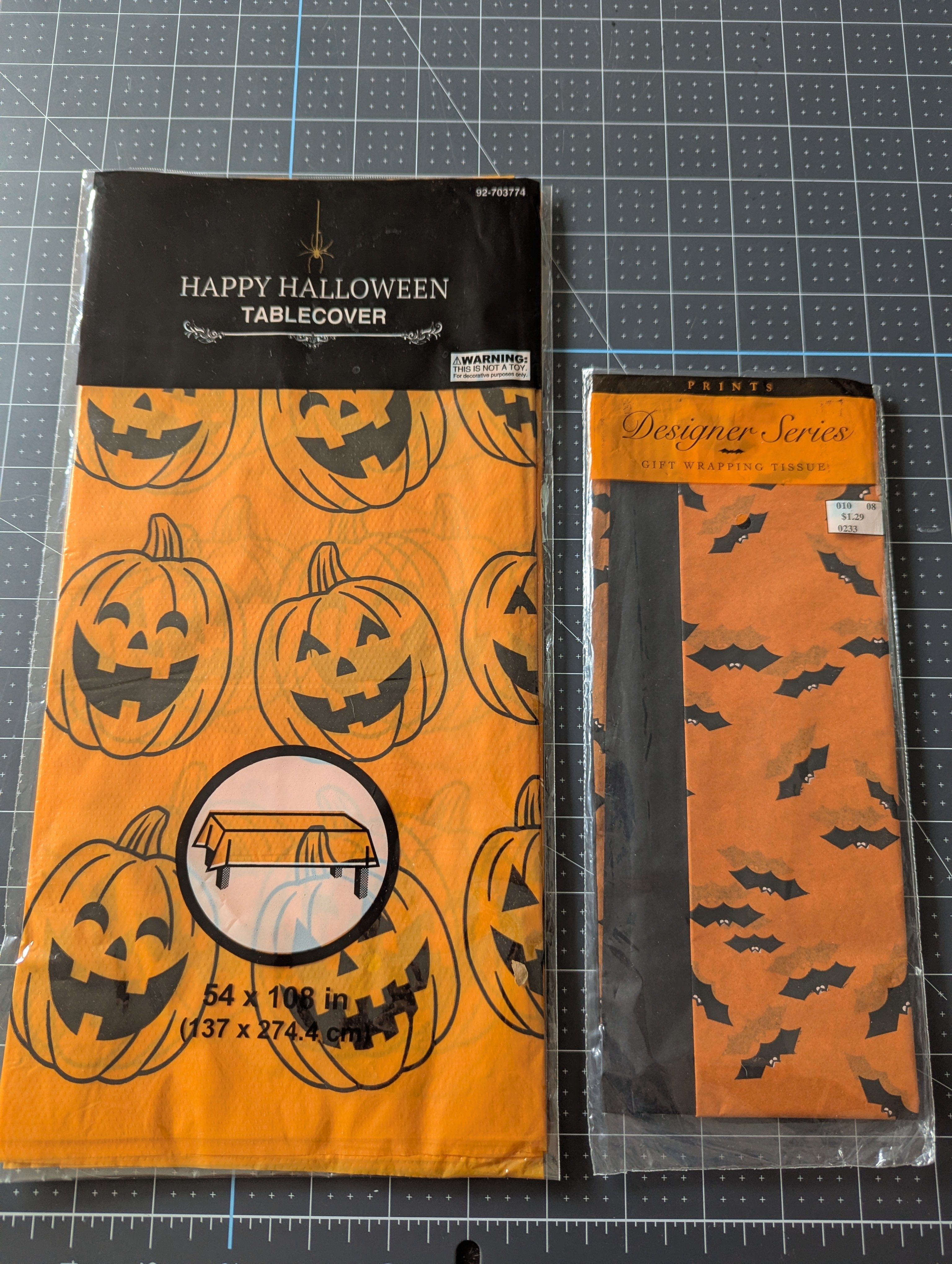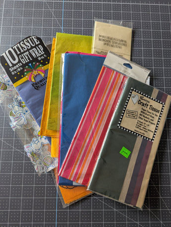 A variety of packs of craft tissue paper PLUS a bonus Halloween themed table cloth and Easter themed cellophane piece. For gift and party crafters and those using tissue paper for other paper crafts.