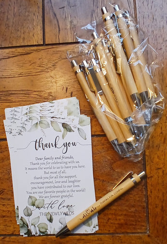 These were a big hit at our wedding. Nice wood ballpoint pens with inscription "Thanks for coming", 12 pens.