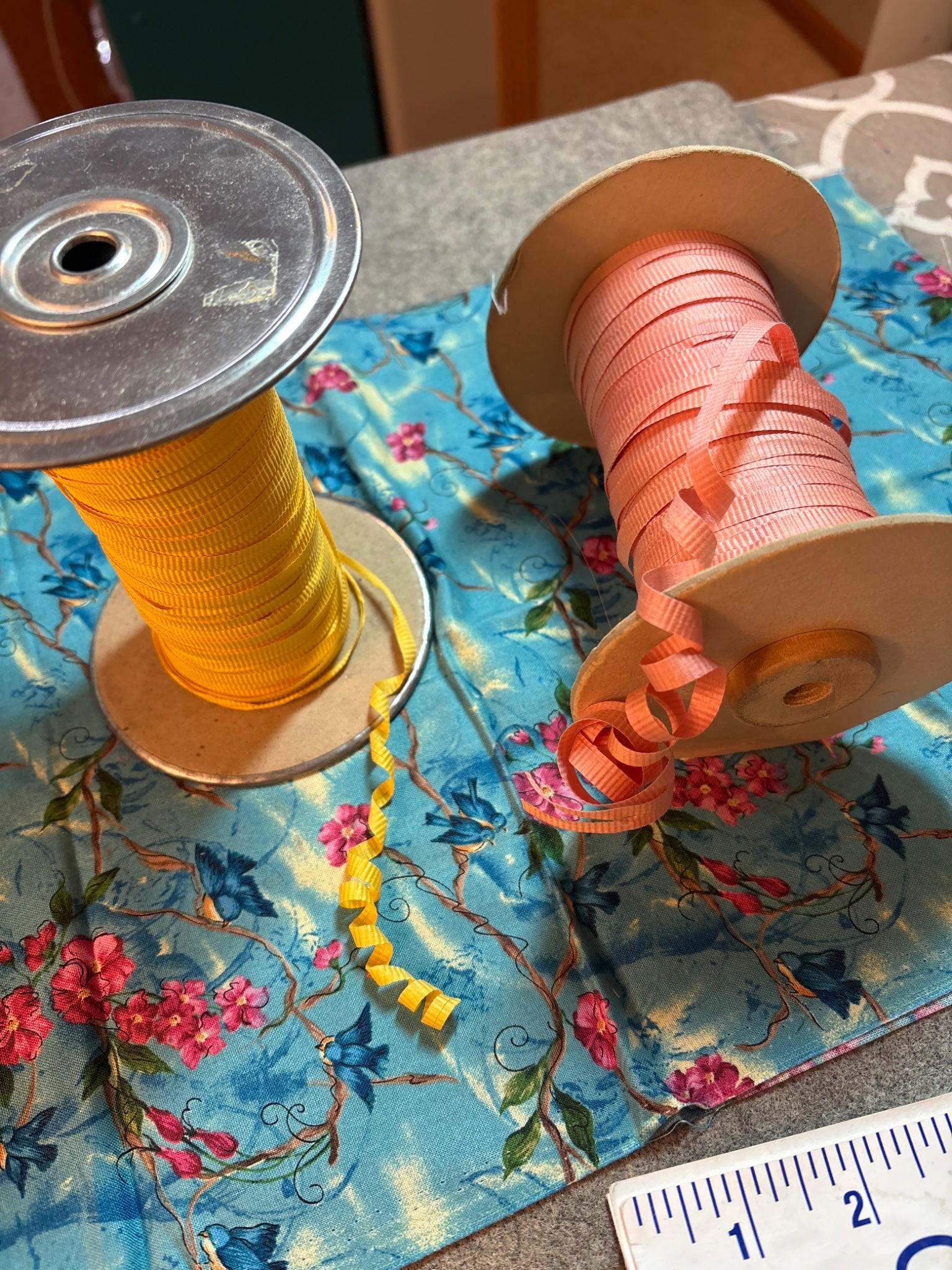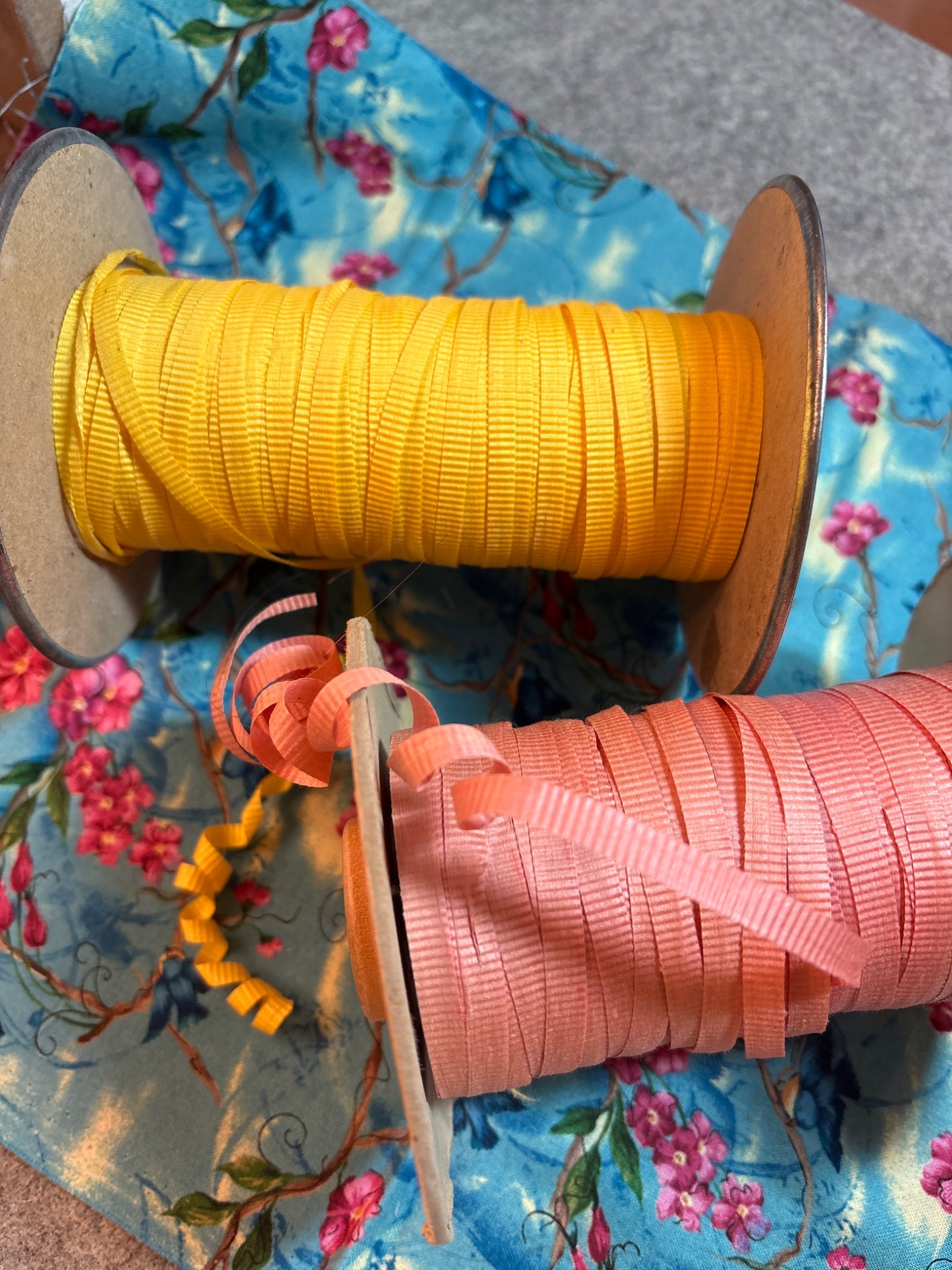 Lot of 2 vintage paper curling ribbon rolls pink yellow