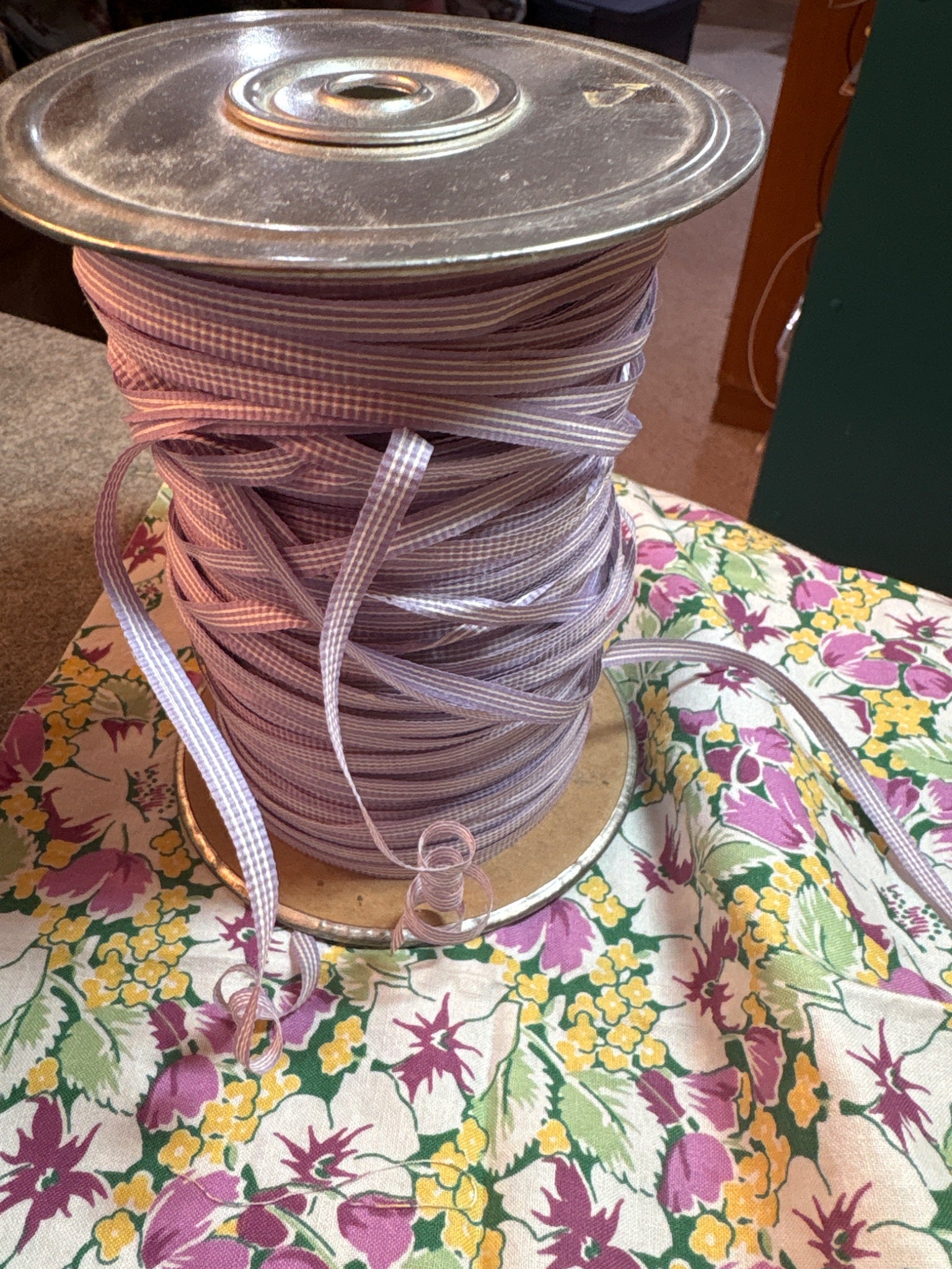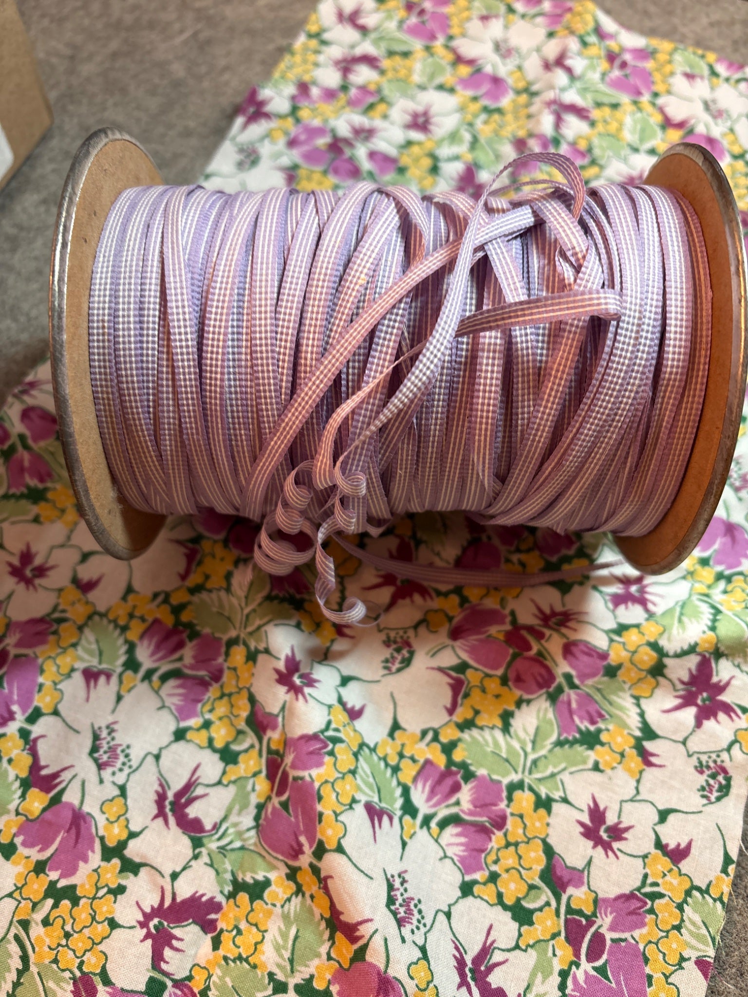 Vintage paper curling ribbon lavender check gingham