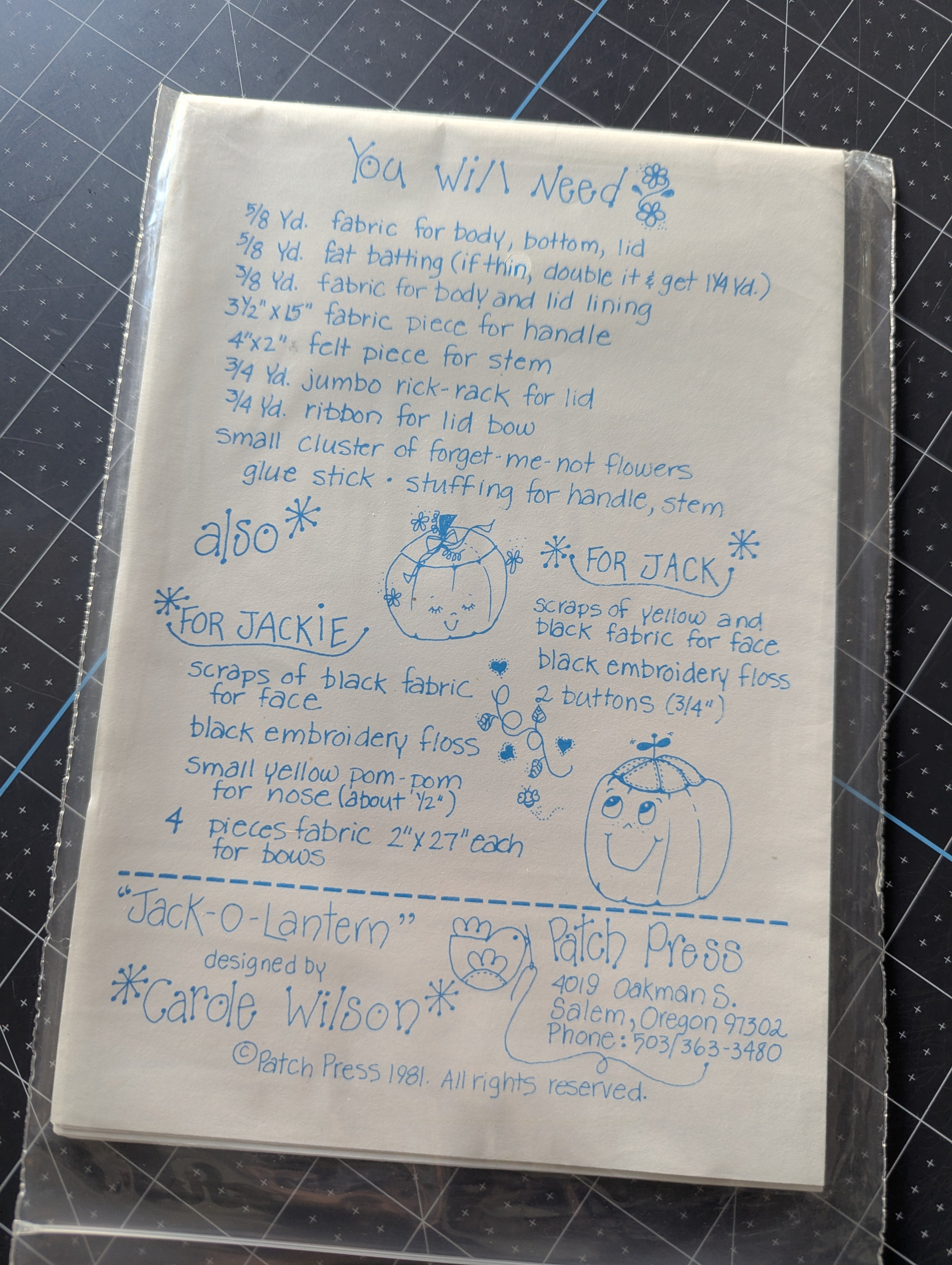 Patch Press Jack-O-Lantern Treat Bucket Pattern