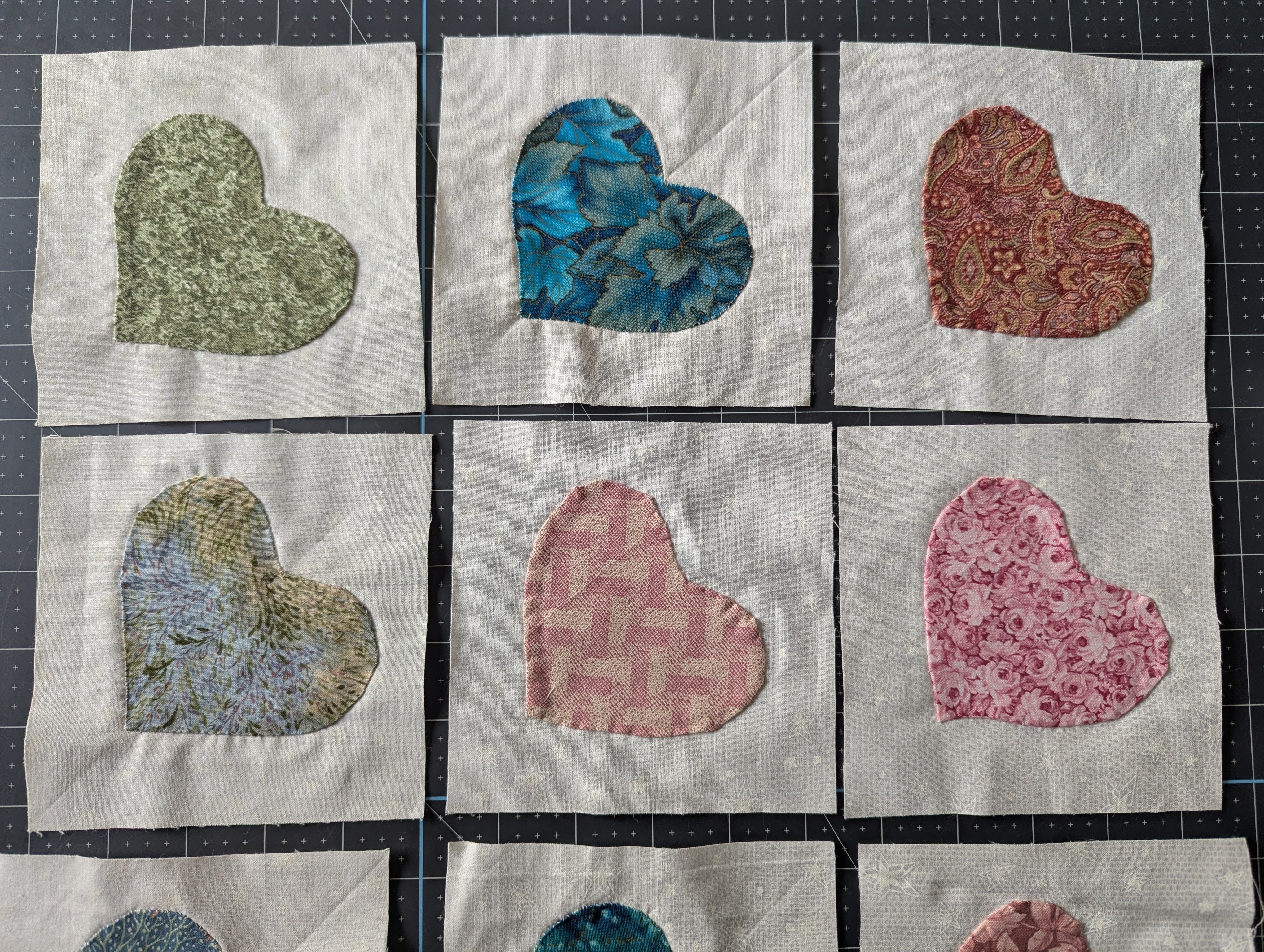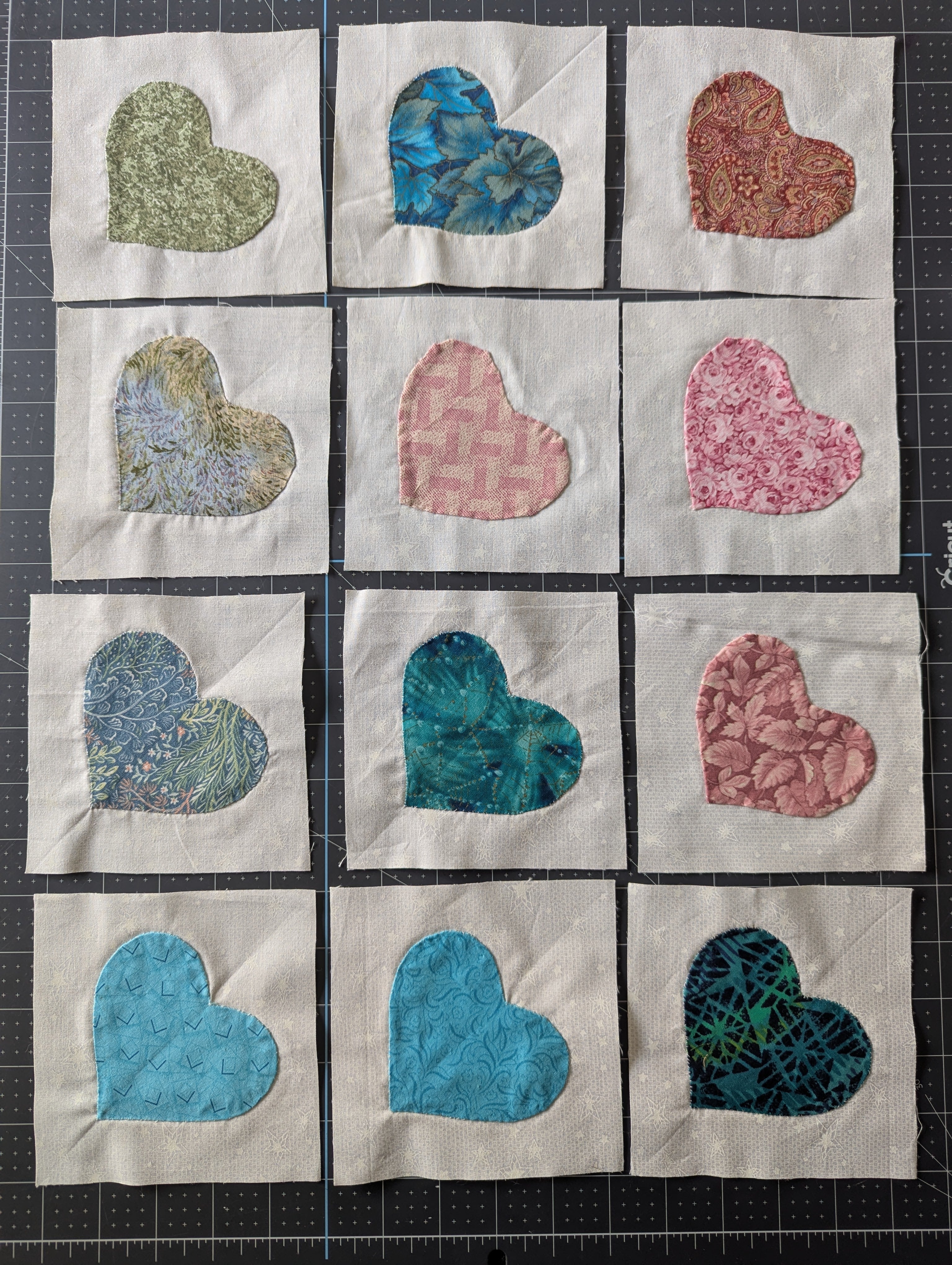 12pc Set of 5 x 5-inch Hand-Stitch Heart Quilt Squares - Lot A