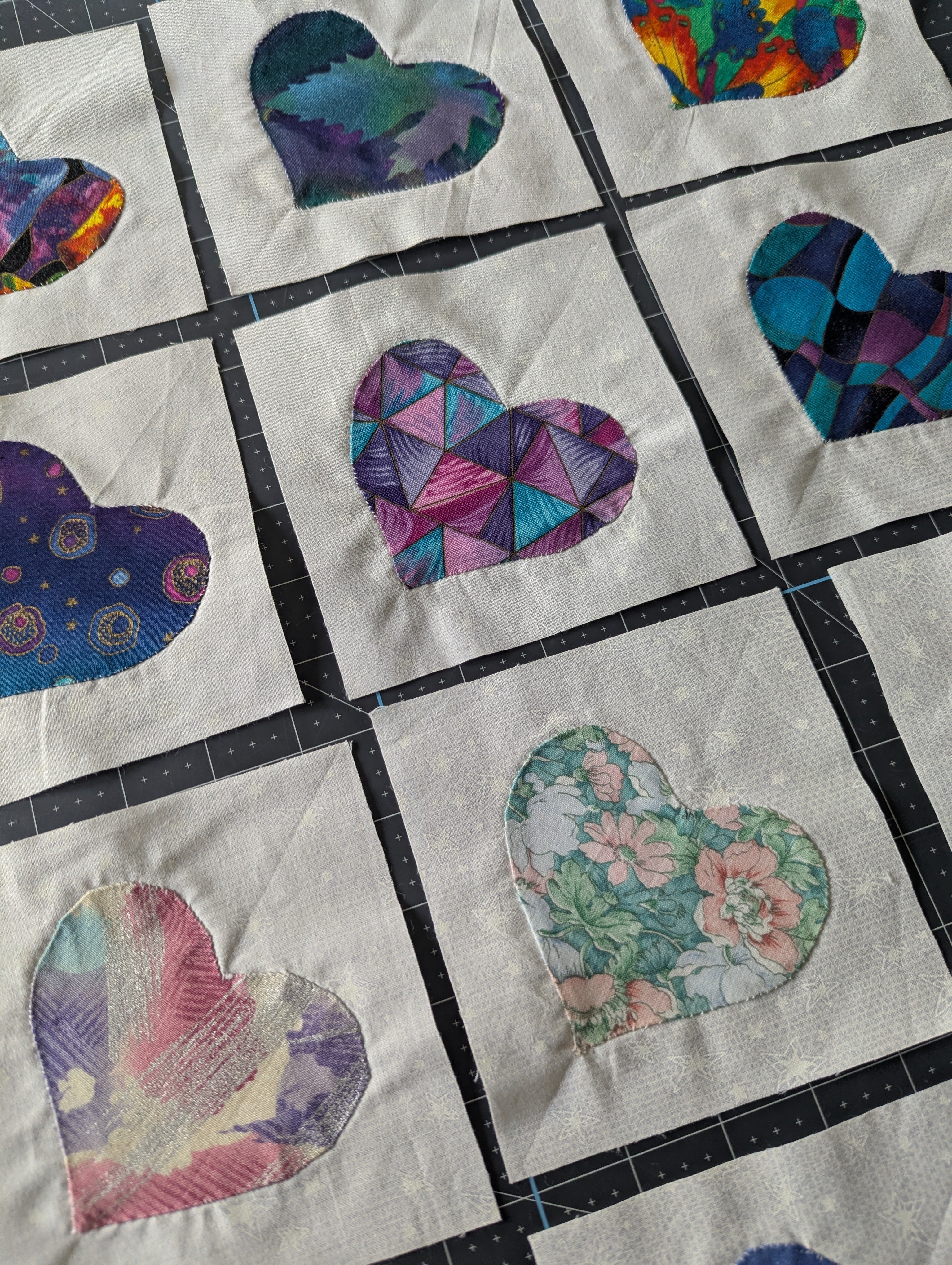 12pc Set of 5 x 5-inch Hand-Stitch Heart Quilt Squares - Lot B