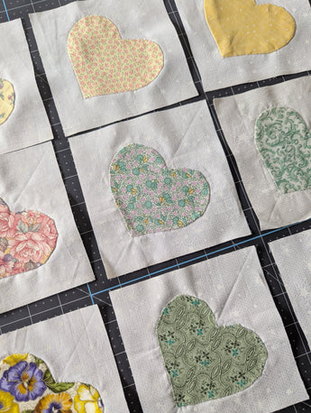 12pc Set of 5 x 5-inch Hand-Stitch Heart Quilt Squares - Lot D