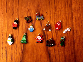 Vintage Set of 12 Painted Wood Miniature 1" Charms with Top Hook