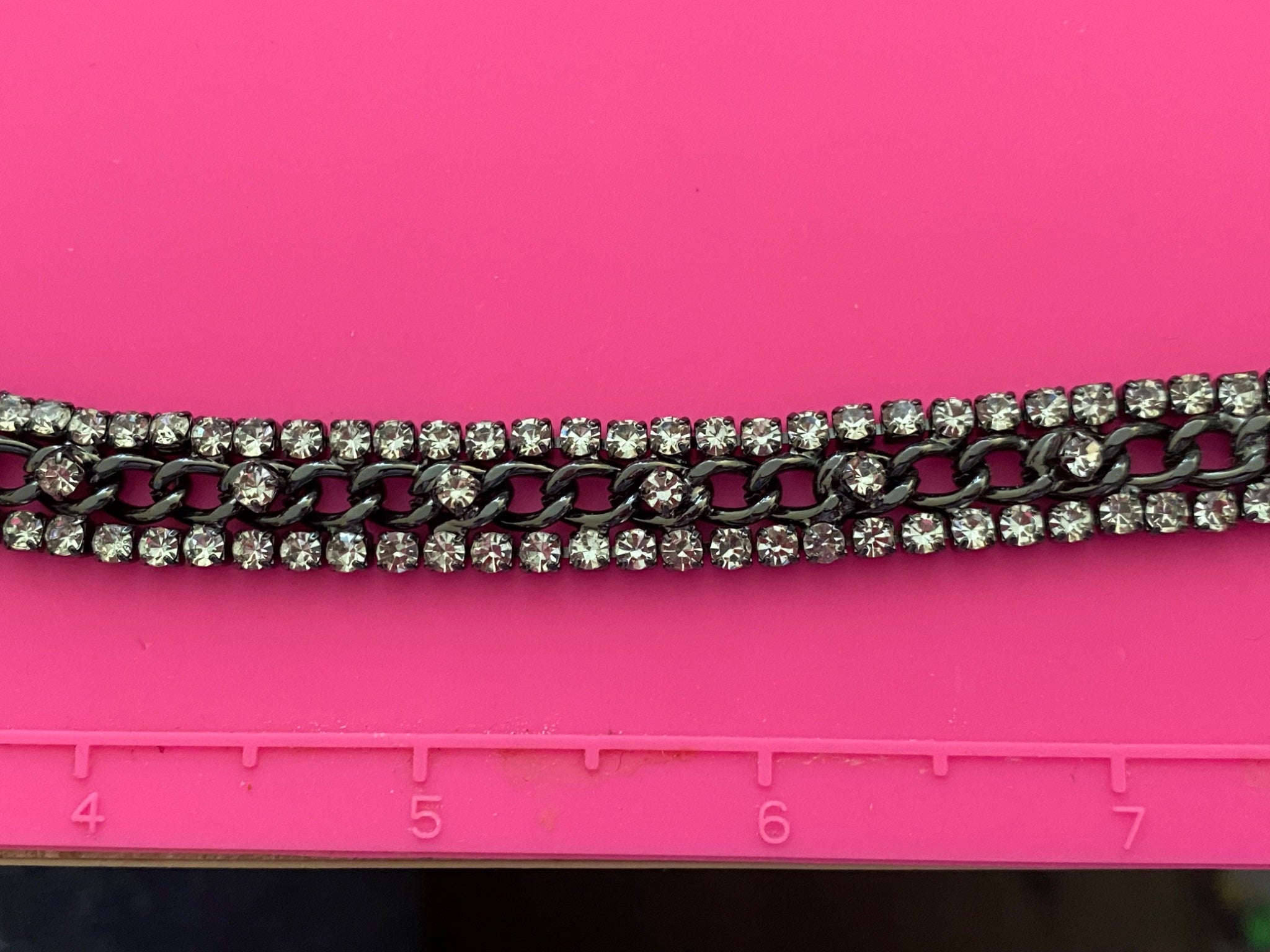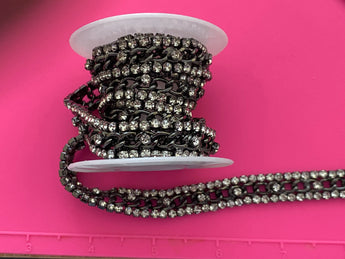 1 yard Ornate Gunmetal Rhinestone & Curb Chain Cup Chain Deluxe Trim