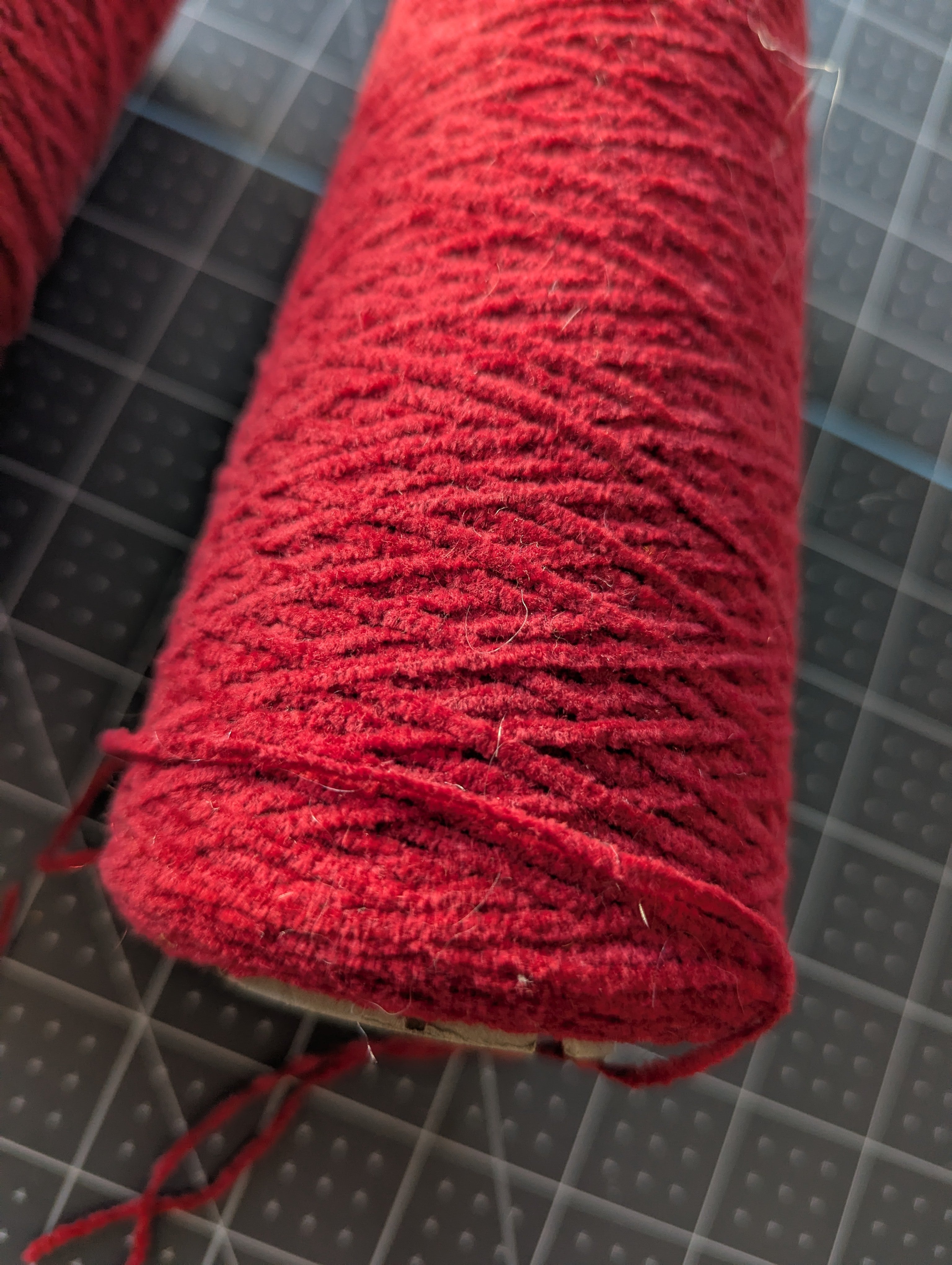 A high-quality flat yarn, likely for machine knit sweaters or other yarn projects. You'll receive both spools. One weights 7.2 oz the other 6.9, which includes the core.