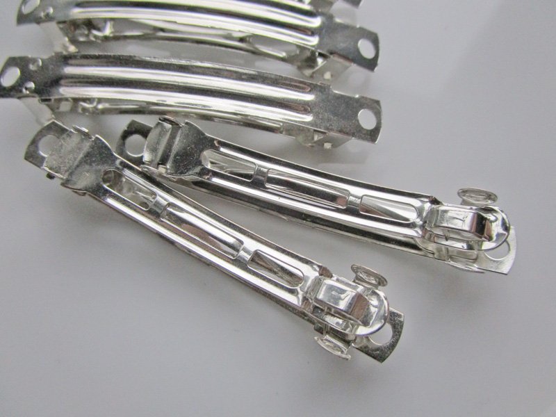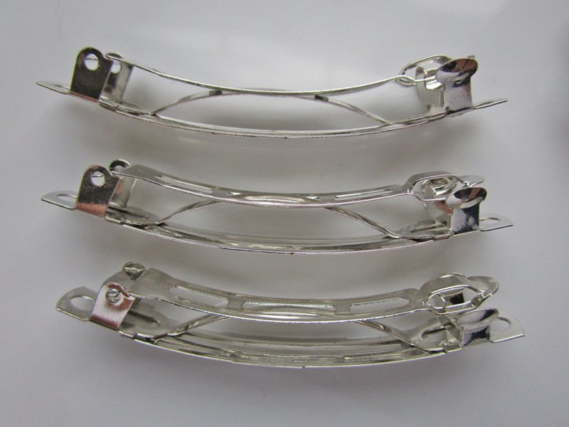 20 Silver Metal Hair Barrette Blanks, 2-5/16"