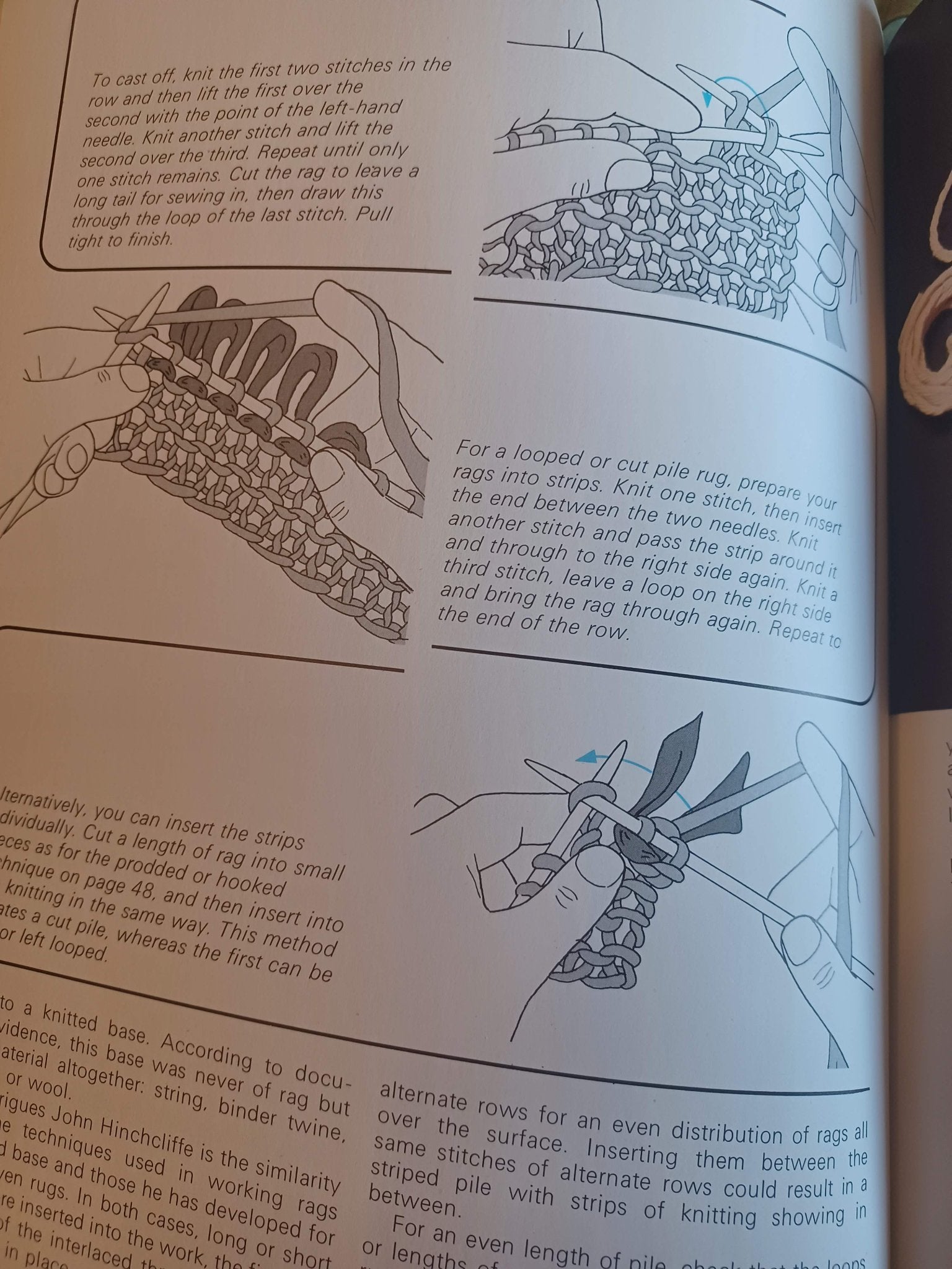 This book from 1977 is a practical guide to making rag rugs, featuring clear instructions and diagrams for techniques such as braiding, hooking, and weaving. It covers both traditional and modern styles, though some projects may appear outdated. Includes color photos and illustrations for hooked, braided, knitted, tapestry, loom, and strip methods.