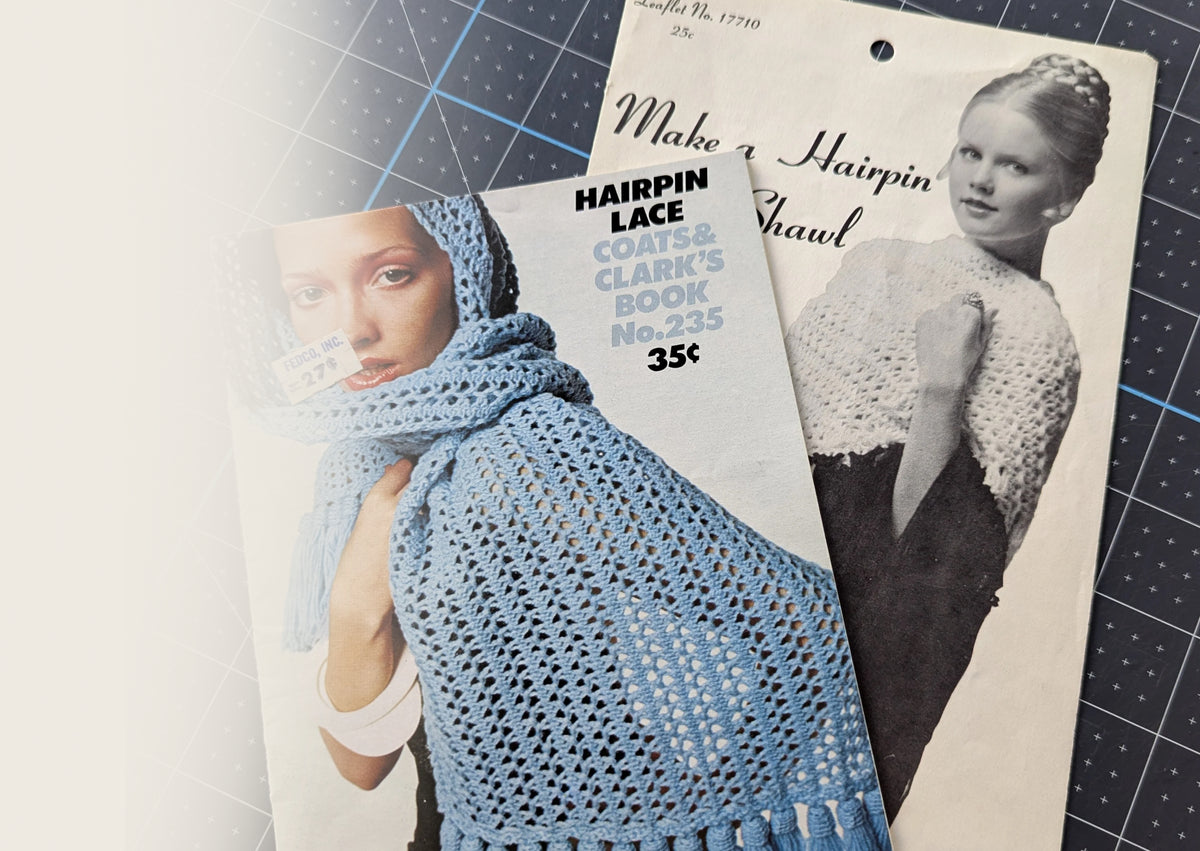 Guides for embroidery, knitting, and fiber crafts, full of instructions and marks of use.