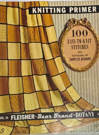 Knitting Primer -100 easy-to-knit stitches plus instructions for sampler afghans by Fleisher Bear Brand Botony no. 3401 Pat no. 12194 1958