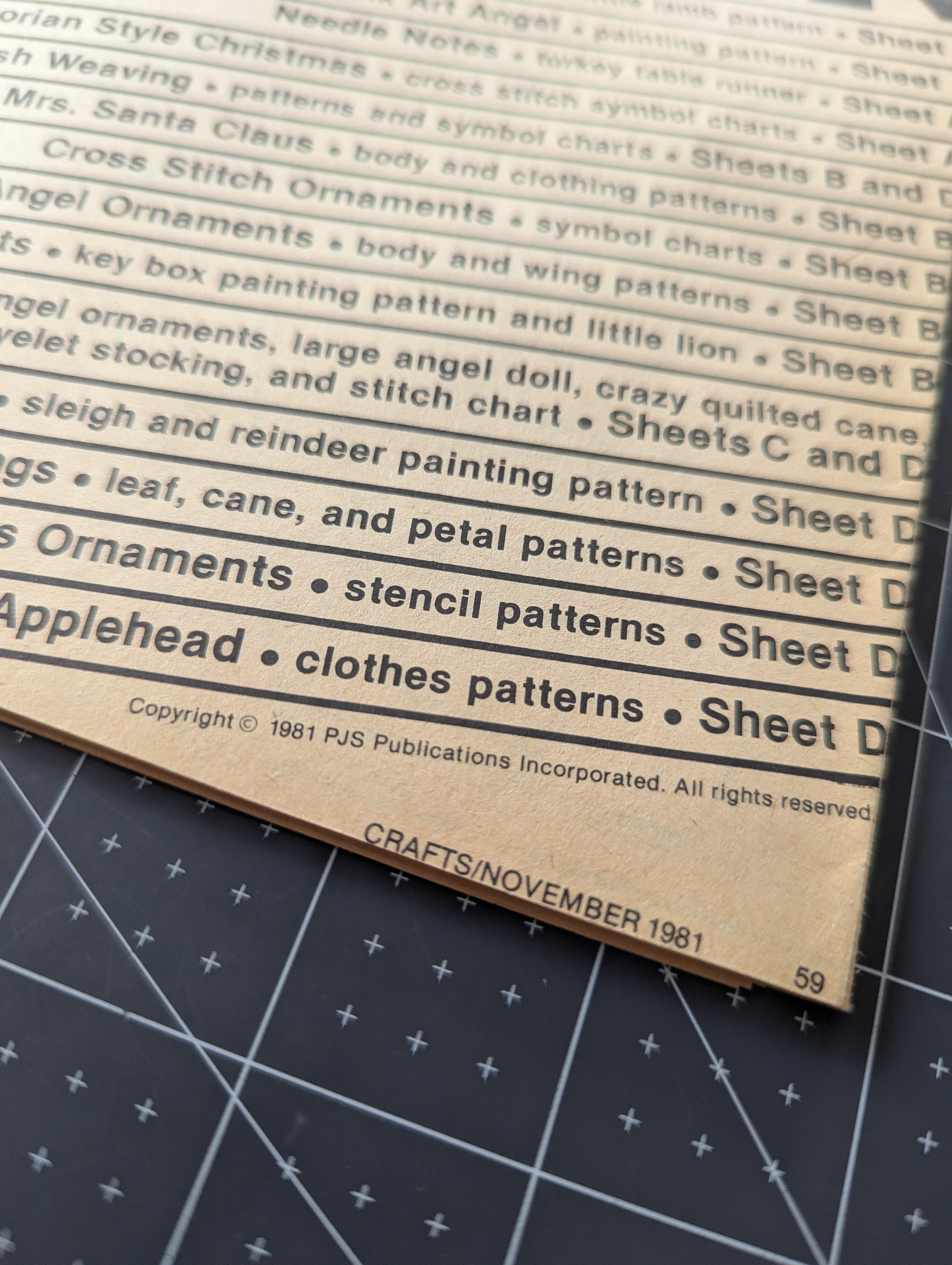 This Crafts Magazine Special Pattern Section from November 1981 includes a variety of vintage holiday craft patterns, perfect for makers, collectors, and lovers of retro seasonal projects. Inside you’ll find Christmas and other holiday-themed patterns typical of early 80s craft style — great for sewing, crafting, gift-making, or nostalgic décor inspiration.
