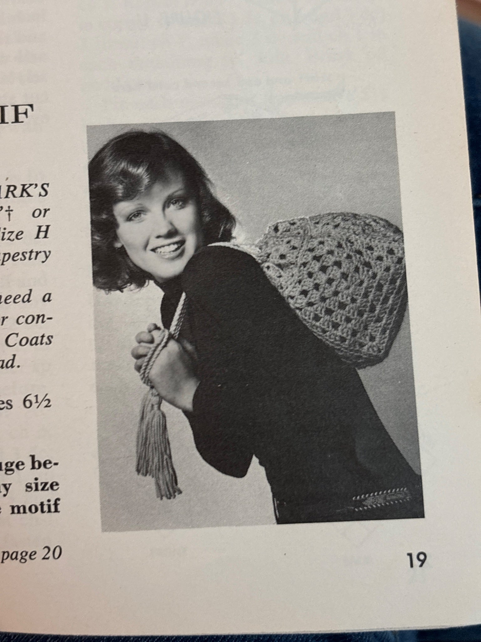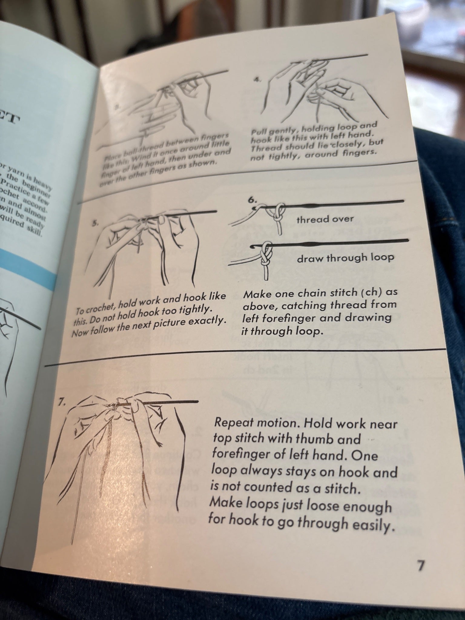 "Book of basic principles of crochet - how to make a chain, a single crochet, how to work in rows and rounds. Projects include: potholder, bag, and bean bag. Followed by: poncho, scarf, open work shawls a lacy stole and cloche."