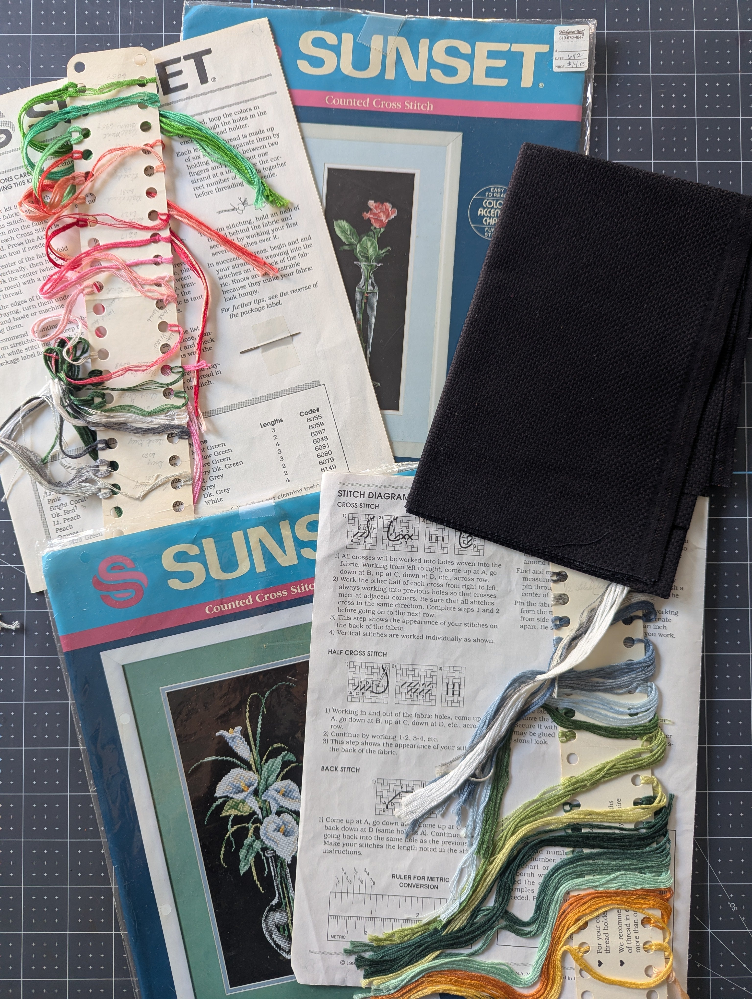 Set of 2 Counted Cross Stitch Patterns (and some supplies)