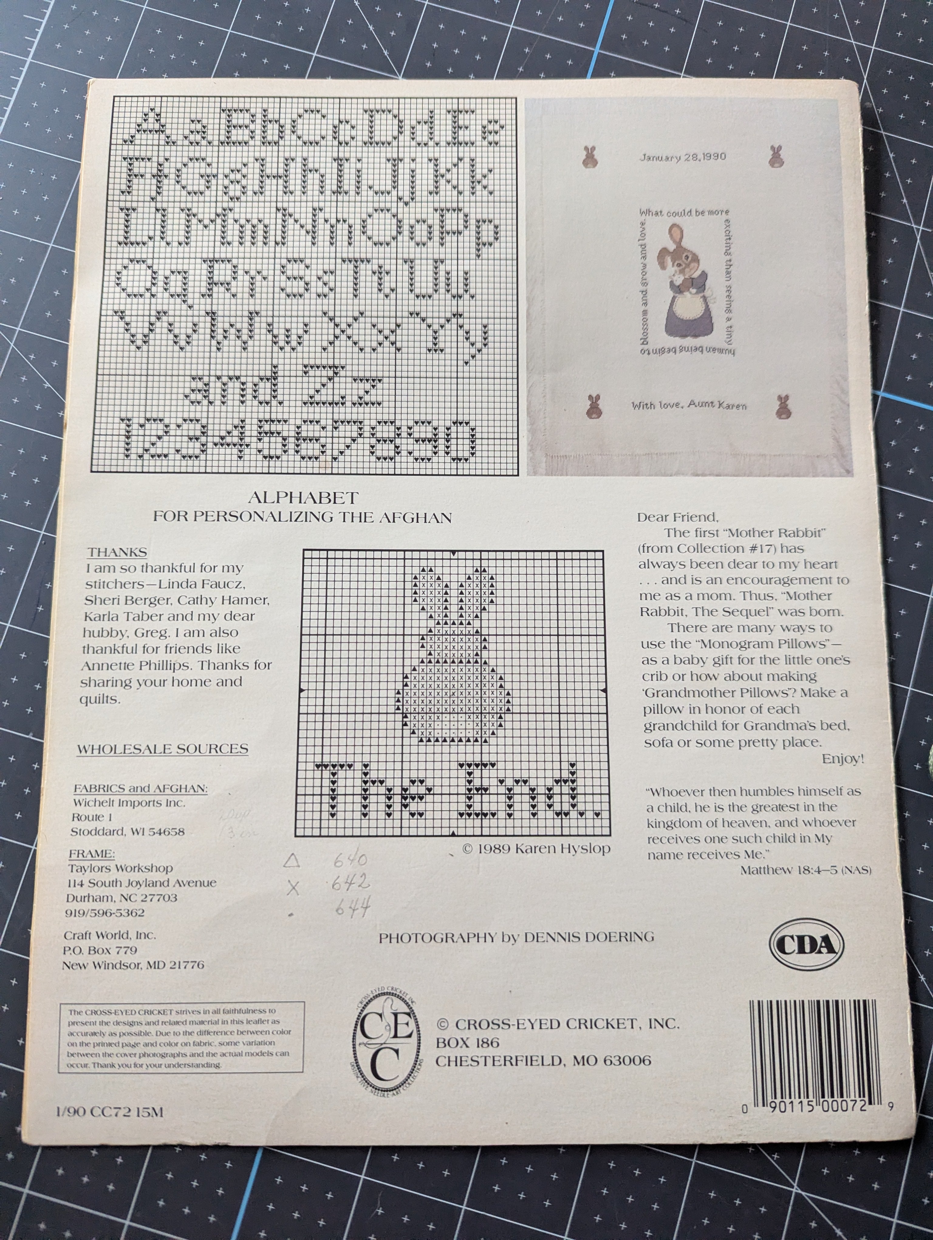 The Cricket Collection - Mother Rabbit, The Sequel Pattern + Floss