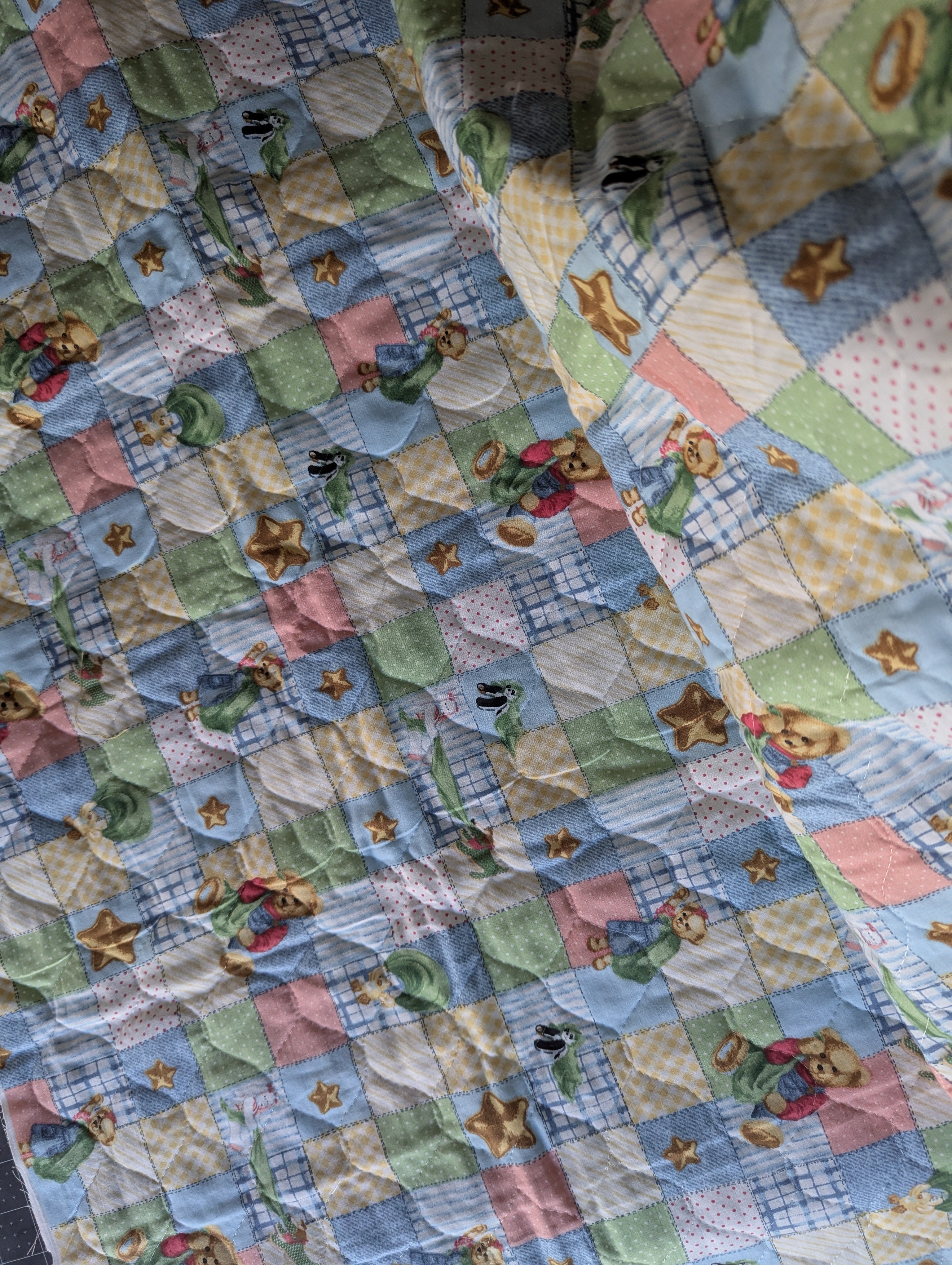 Vintage Bears Pattern Cheater Quilt - 34 x 42in