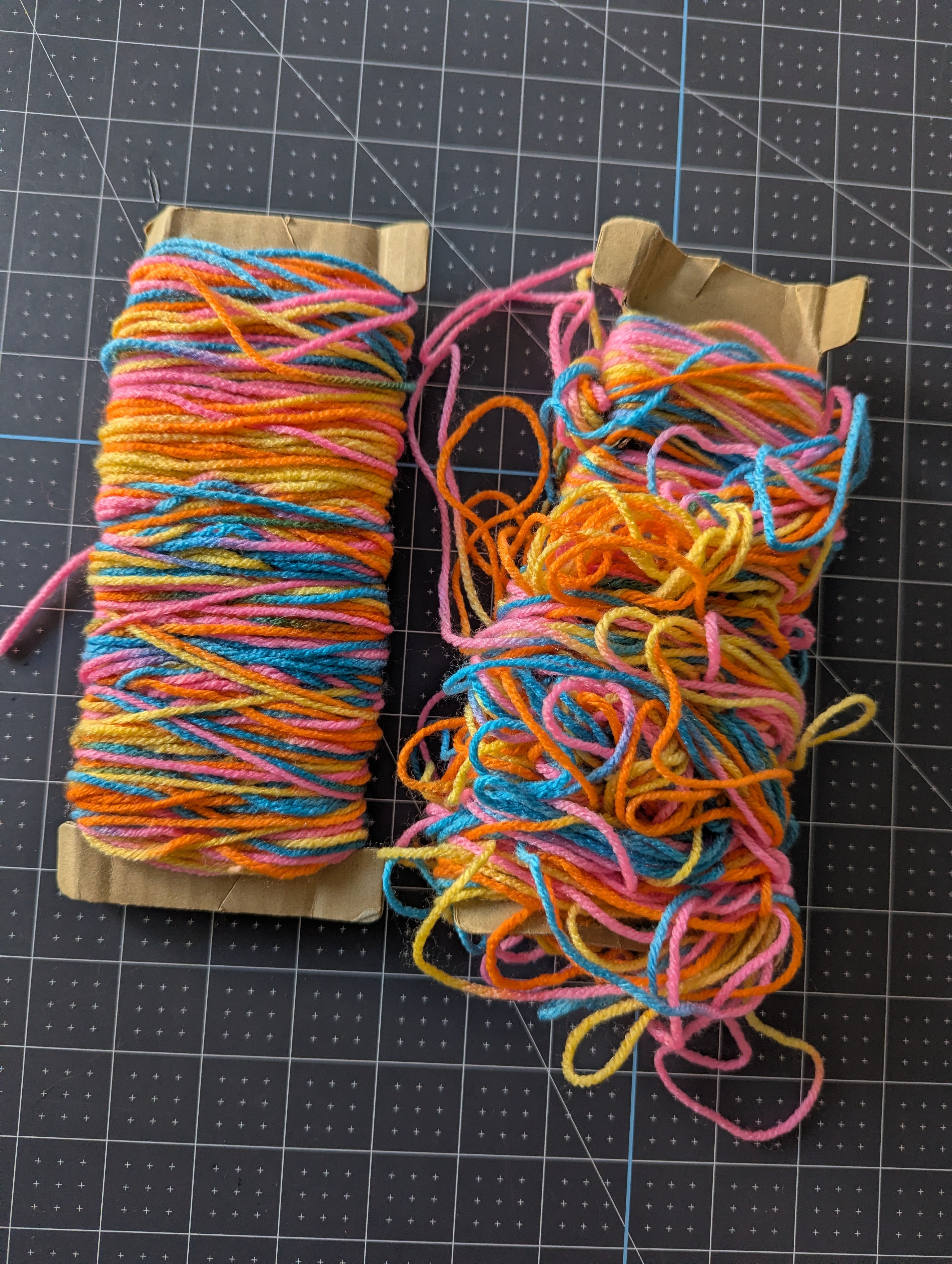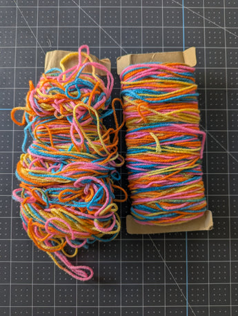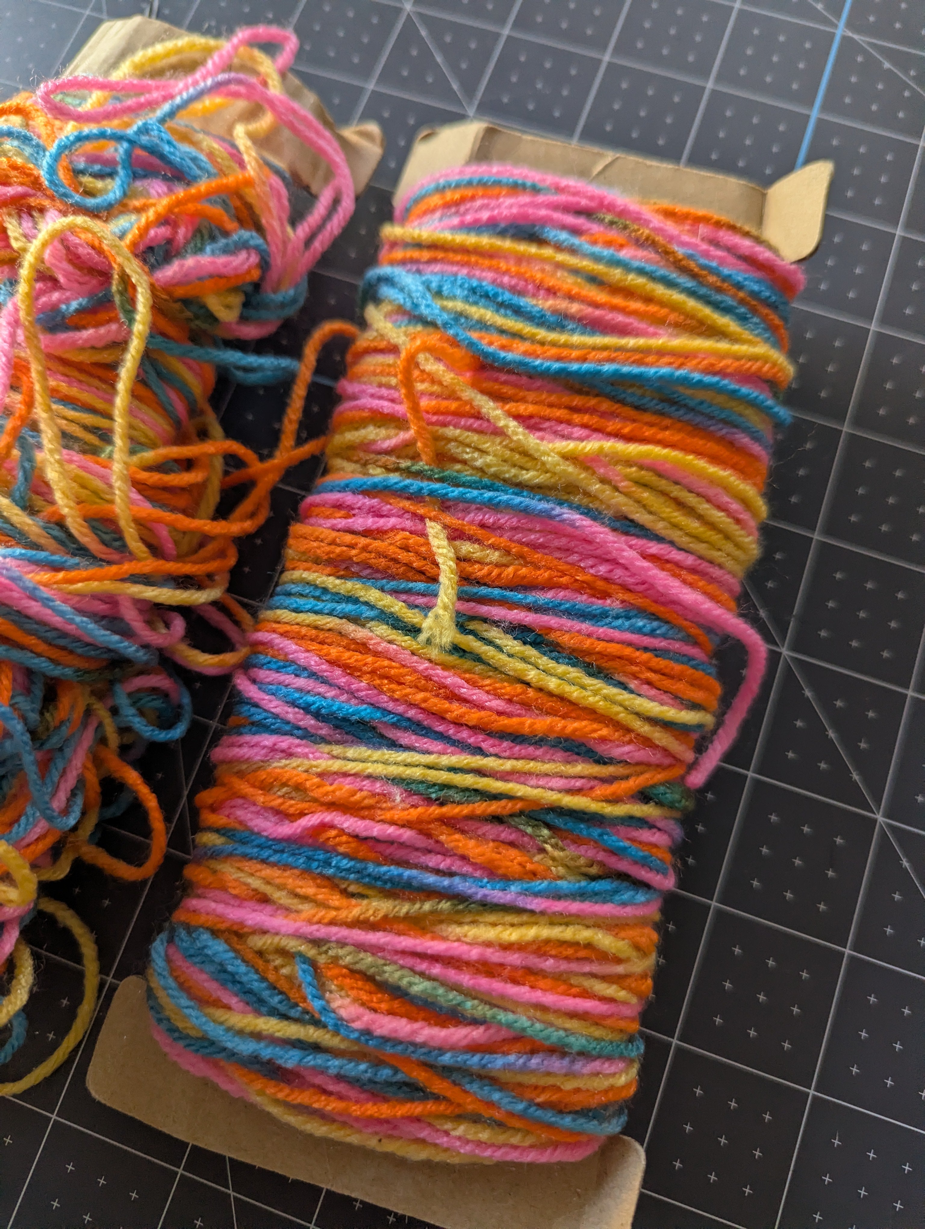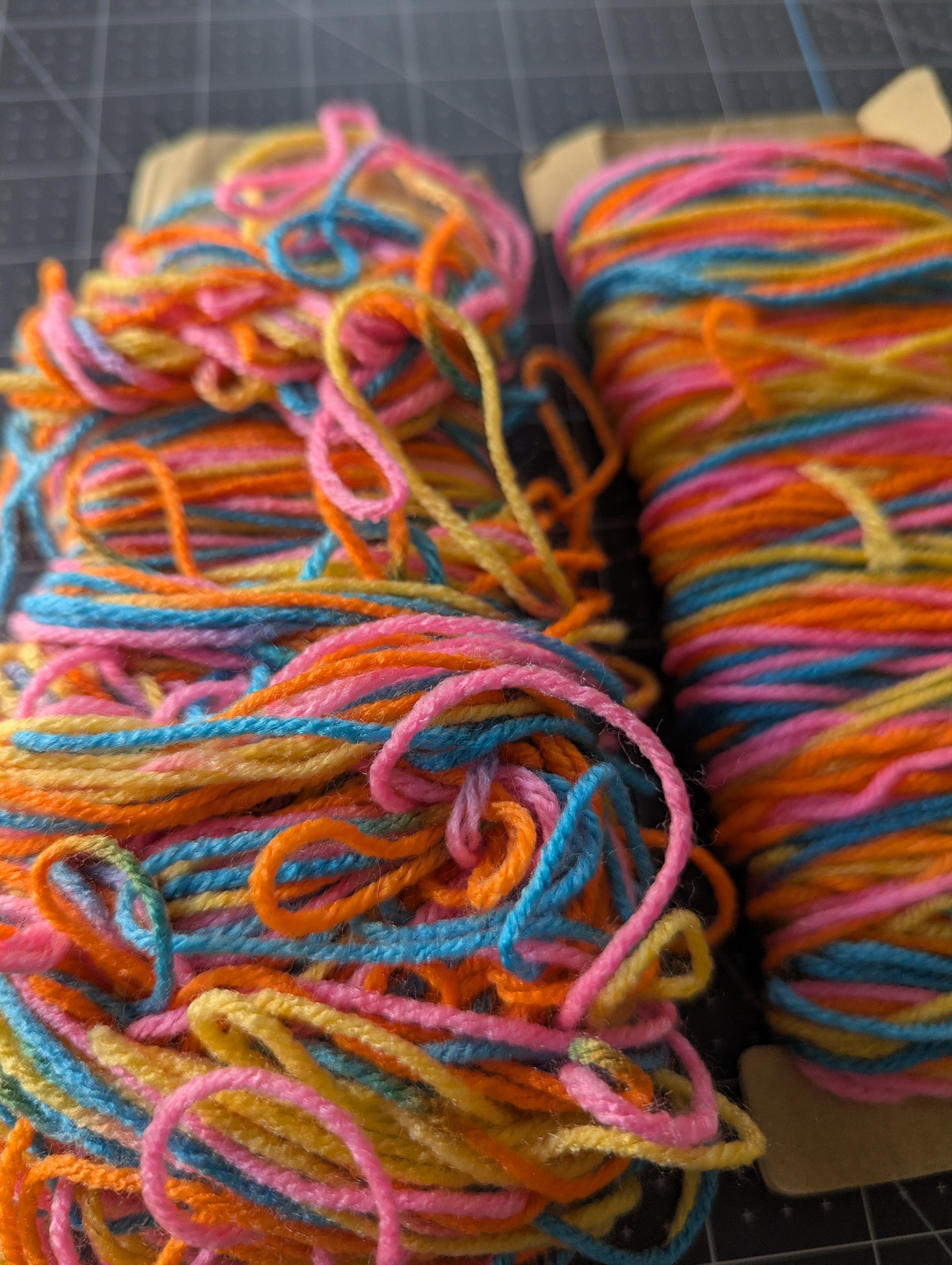 Unclear how much yarn is here. Yarn with packaging weights approx 3.3 oz.