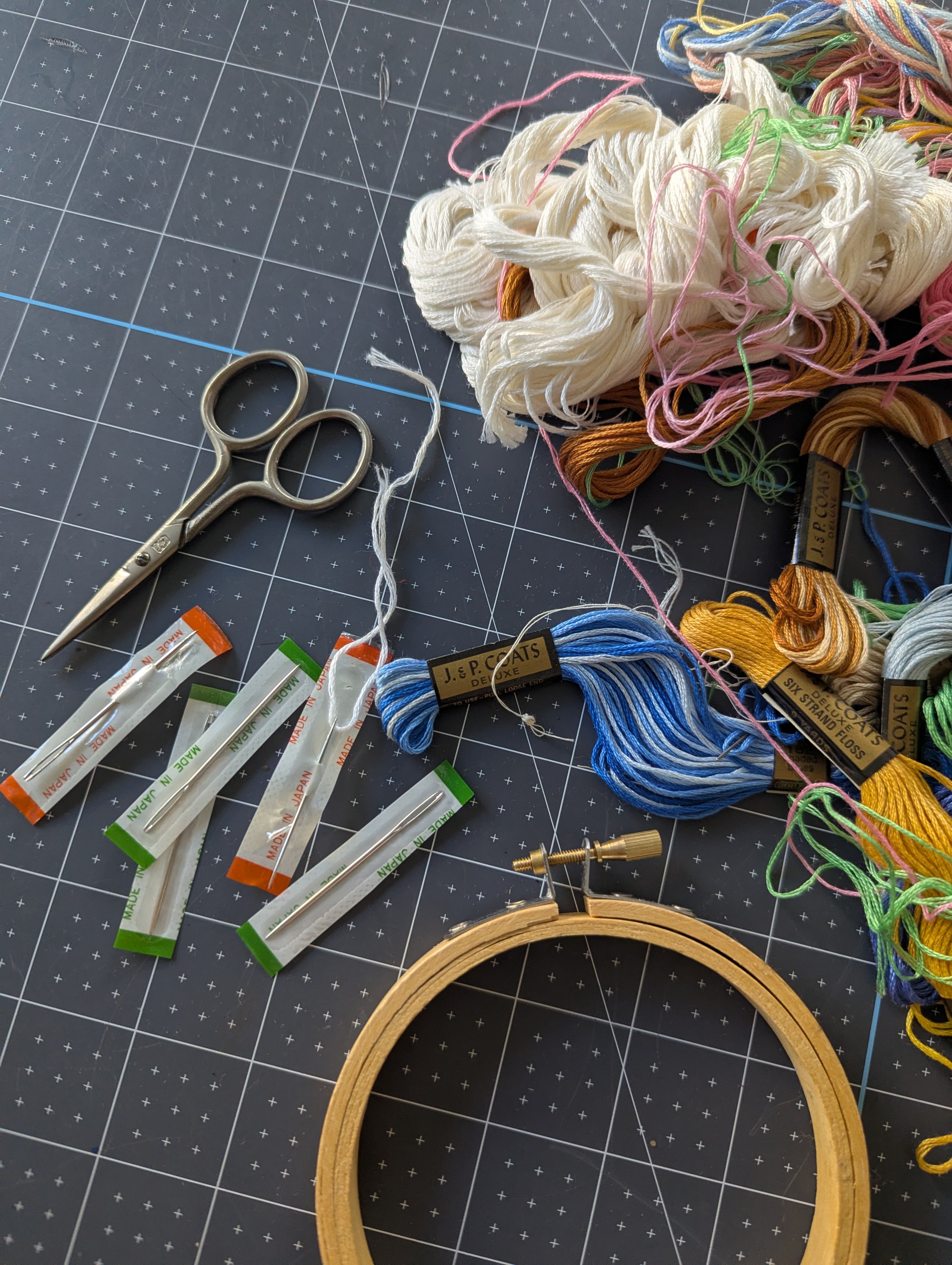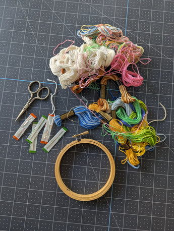 Embroidery Bundle - Needles, Floss, 4-inch Hoop & Small Trimming Scissors