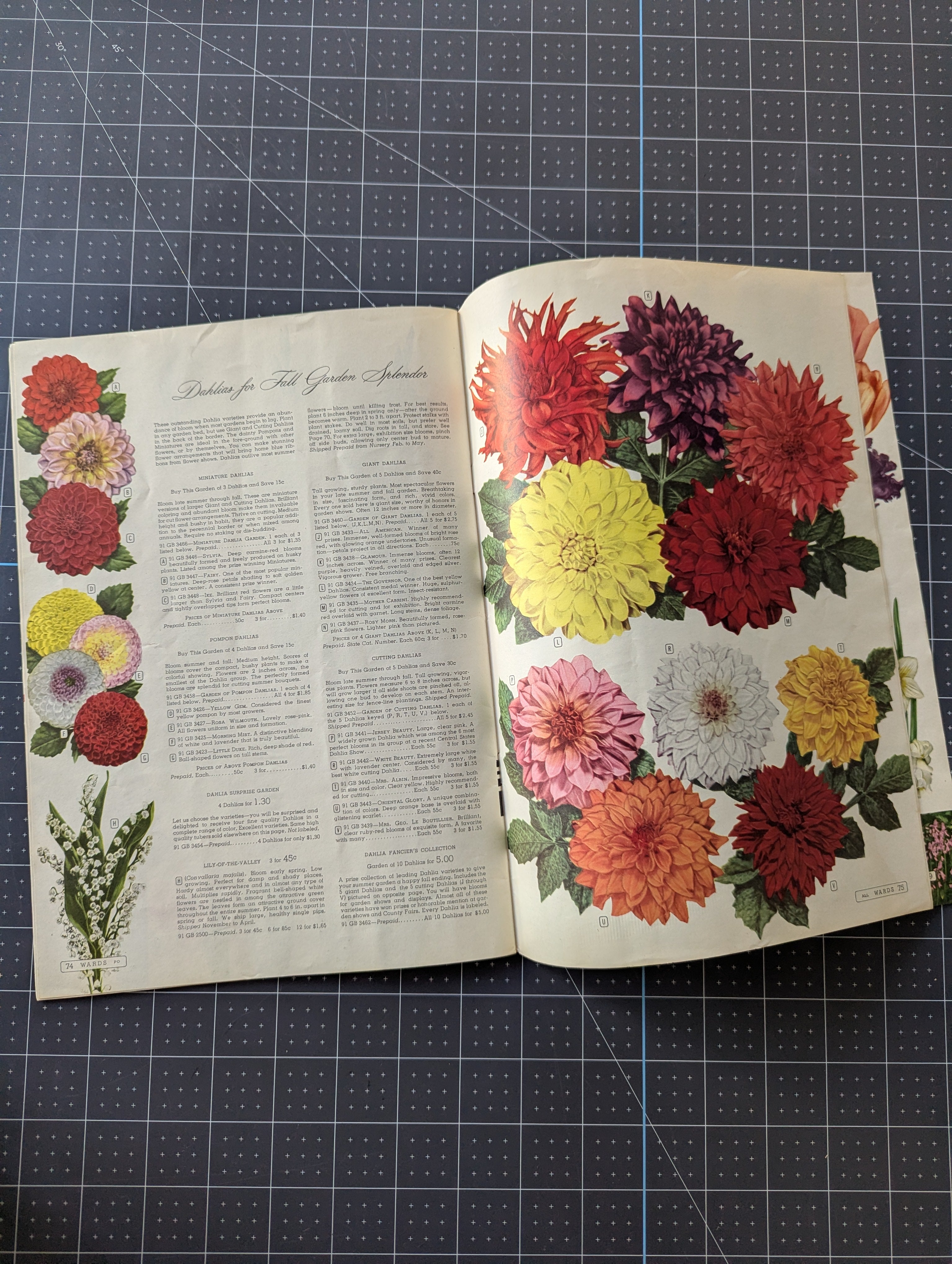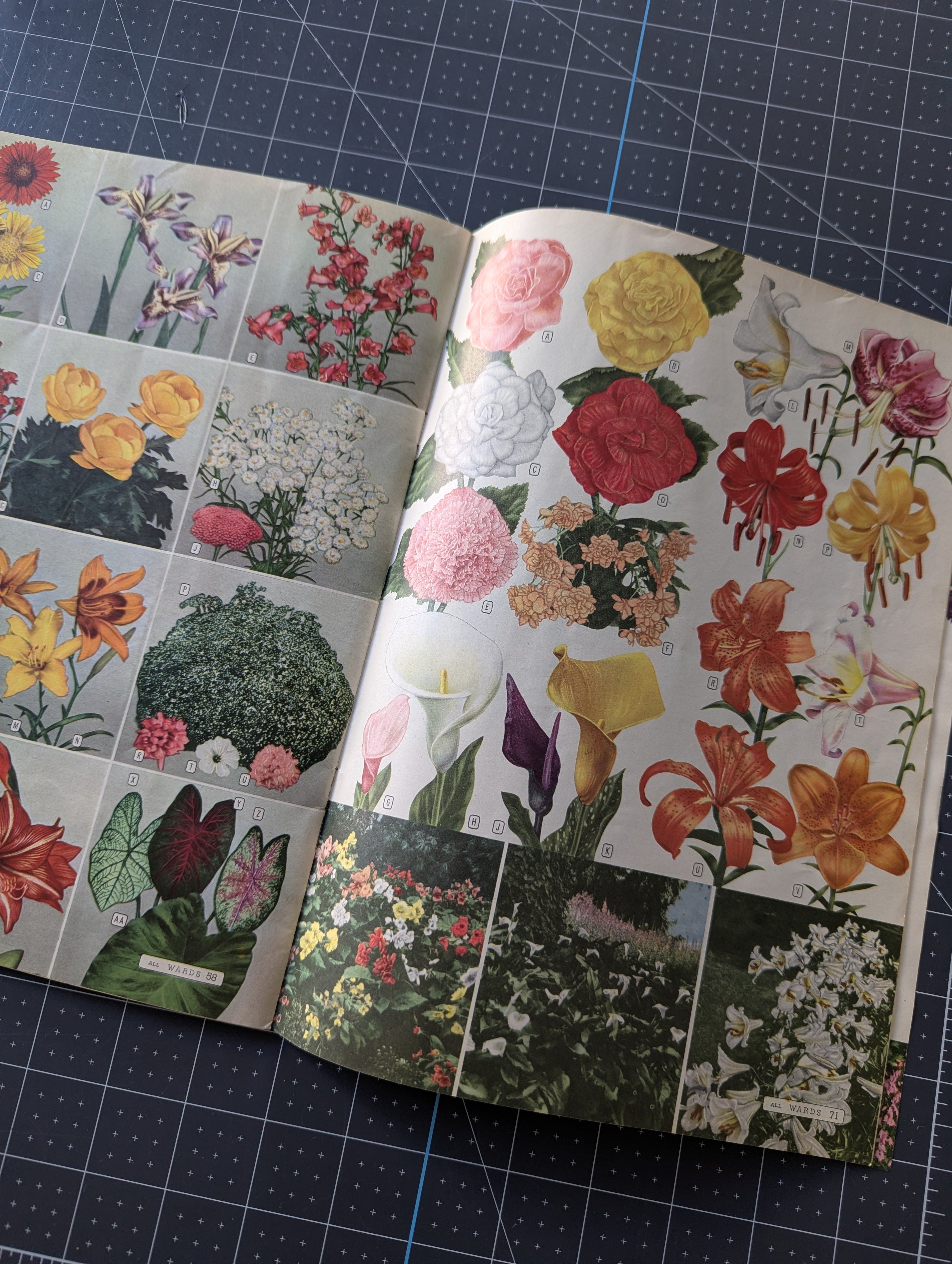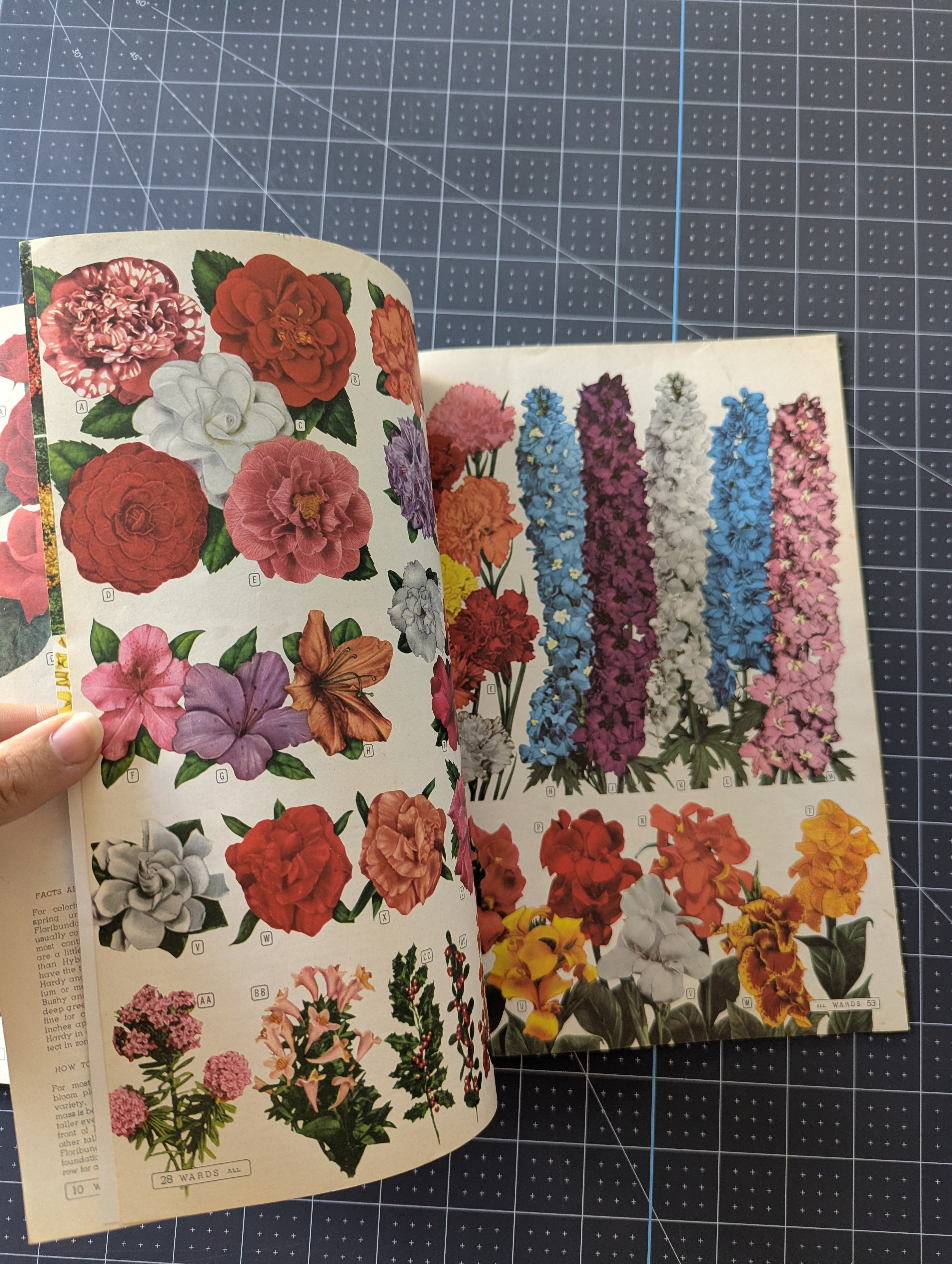 A beautiful booklet with incredible floral illustrations (or perhaps hand colored photograph?) great for paper crafters. The booklet is not fully intact and has 15 double-sided pages of content.
