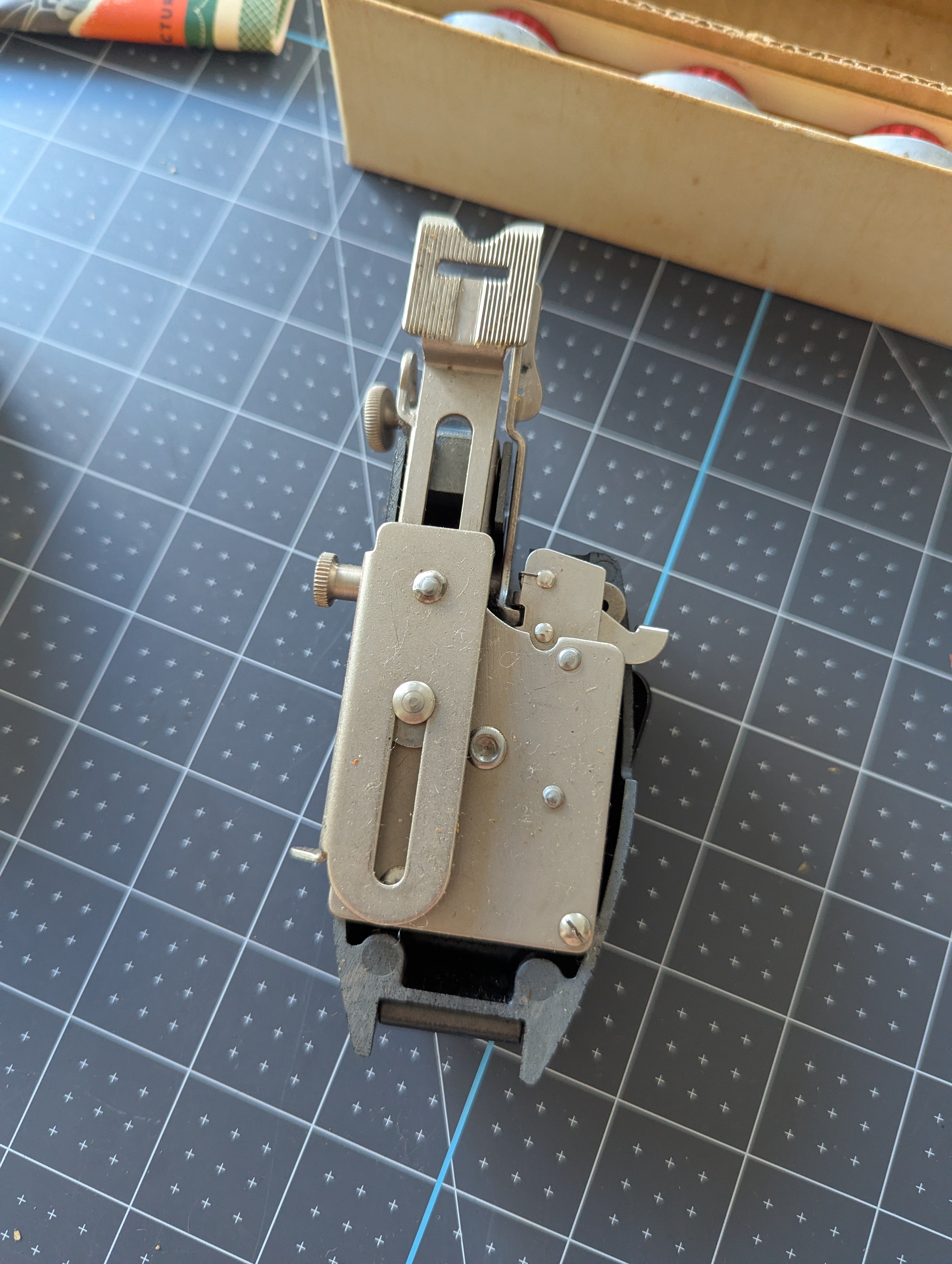 This unique set is in original box, with instruction manuals. It appears all pattern pieces are accounted for. We haven't tested this and don't know if it's in working condition, please see photos for details. Sold as a set.
