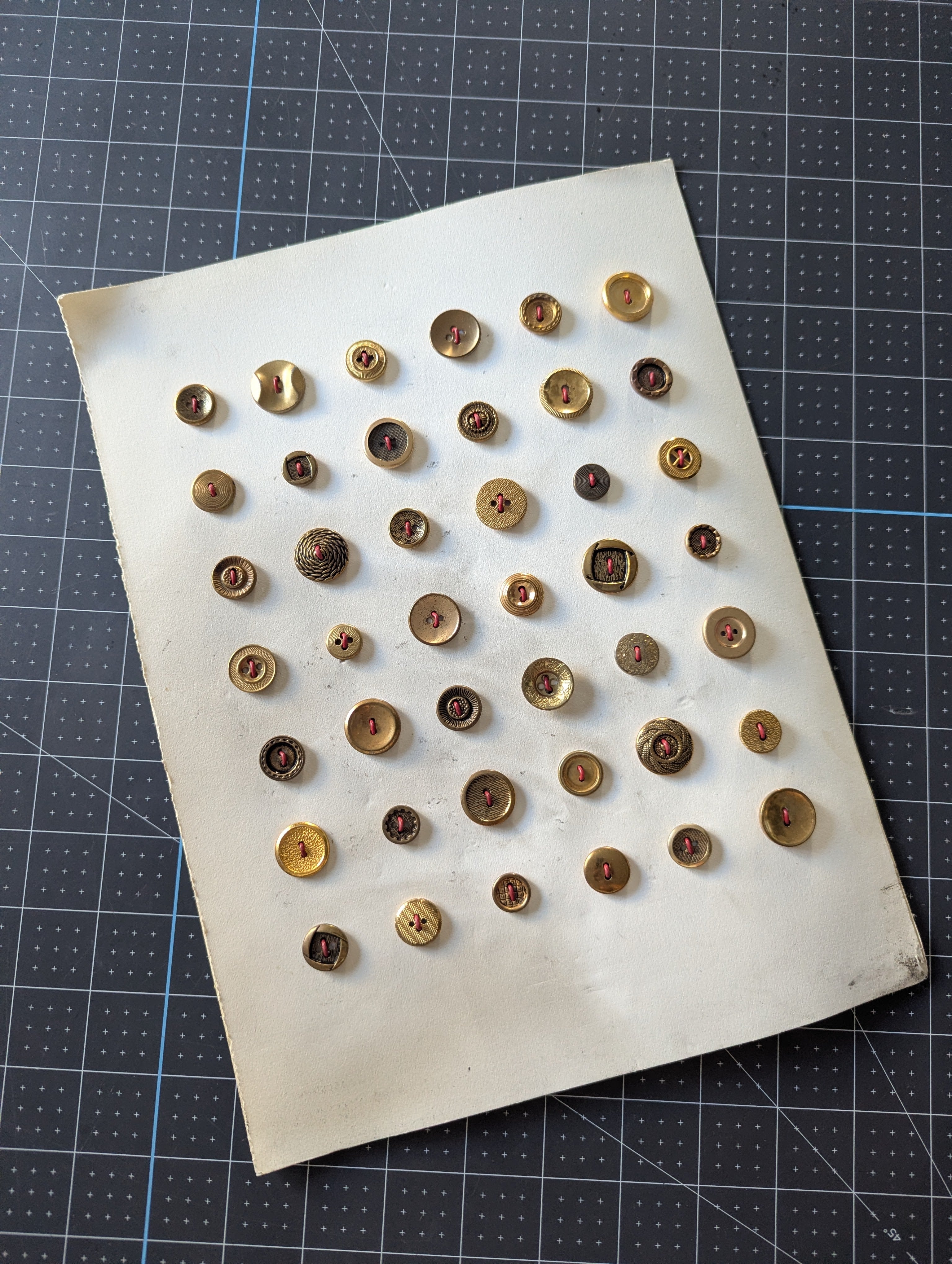 From a button collectors collection. Assembled for sale by the prior collector. The card contains some soot, but no related strong odors. Buttons are in good condition with age related wear and discoloration.