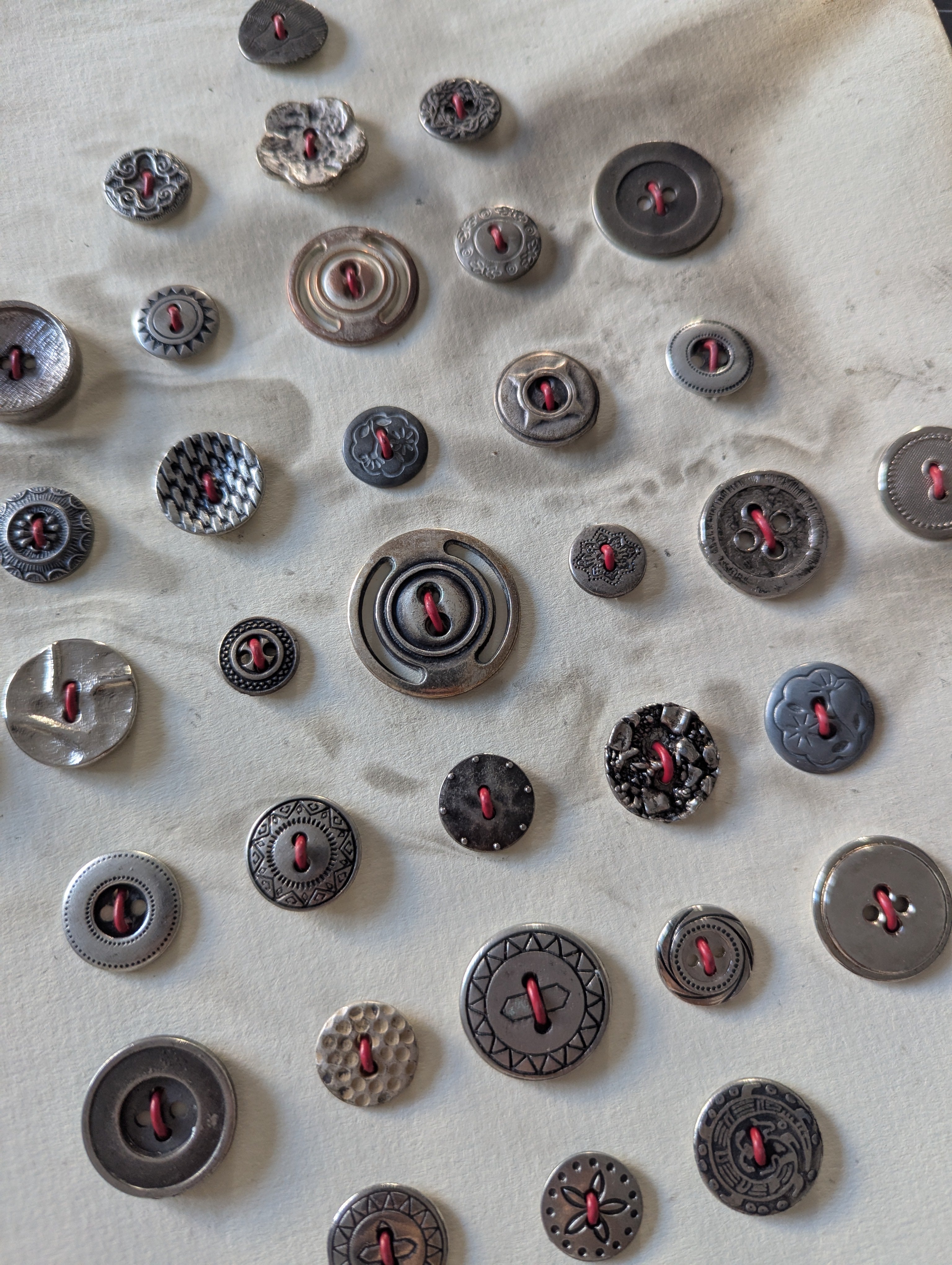 Vintage Heavy Silver Metal Sew-Through Butttons