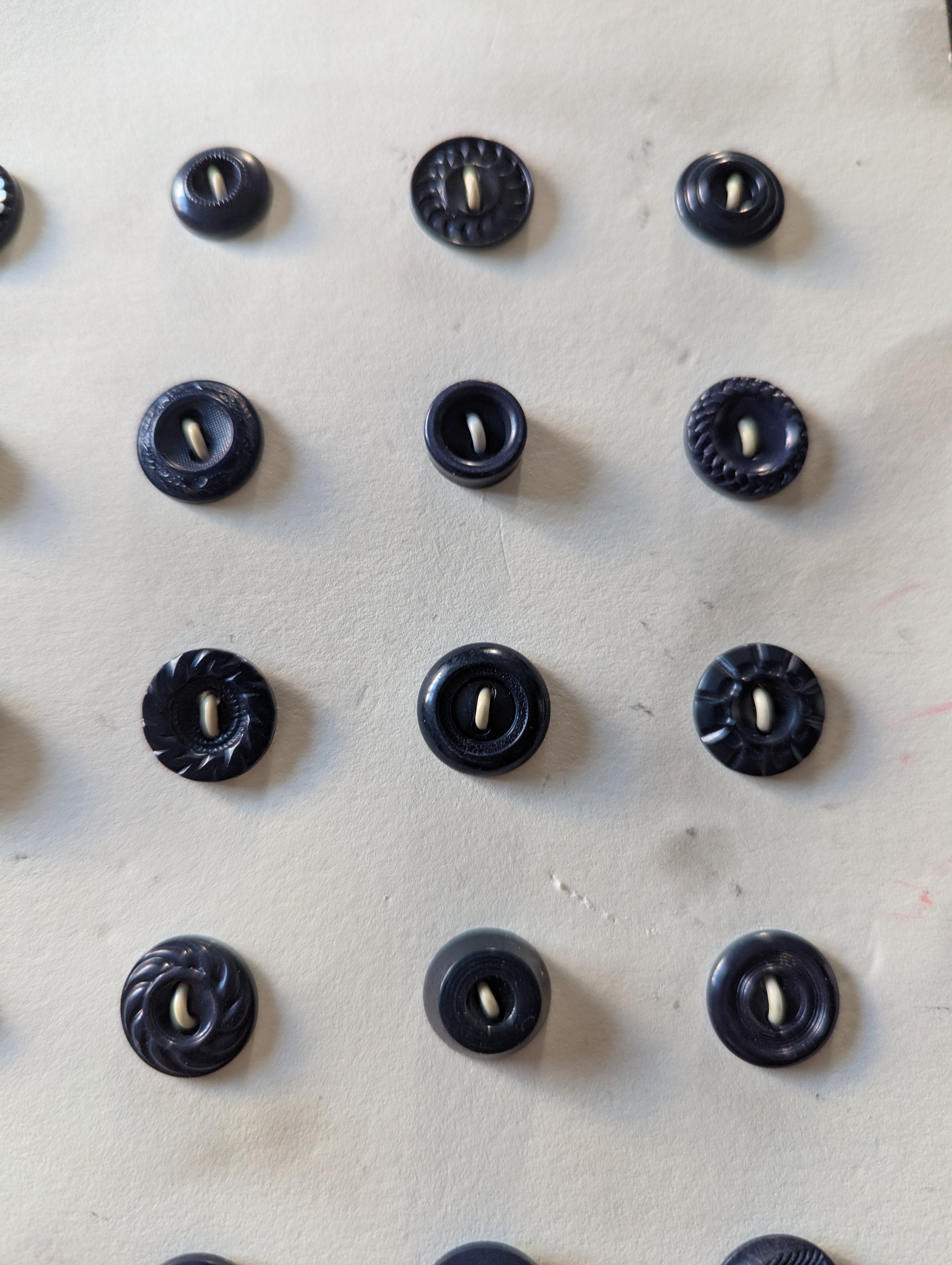 From a button collectors collection. Assembled for sale by the prior collector. The card contains some soot, but no related strong odors. Buttons are in good condition with age related wear and discoloration.