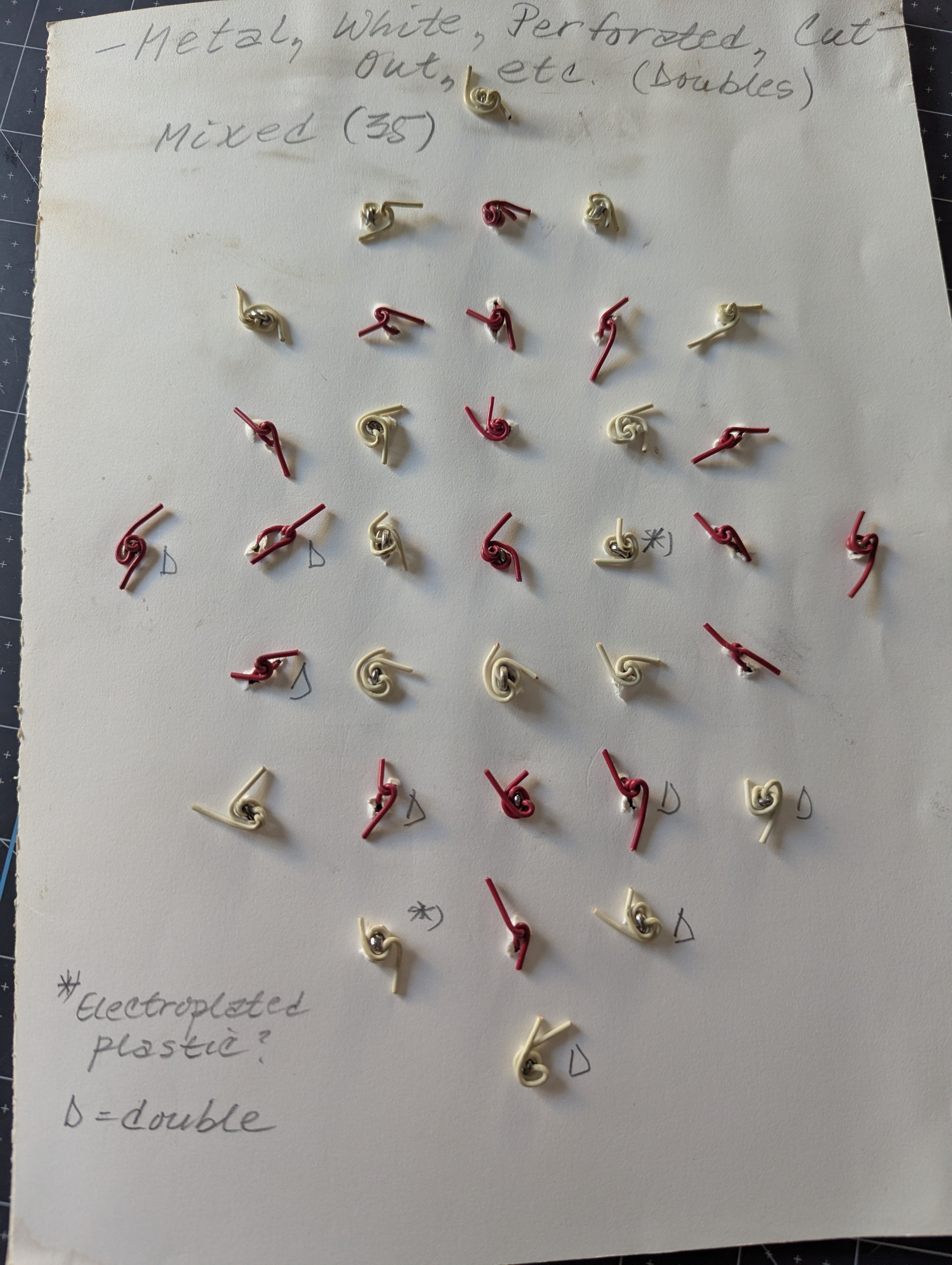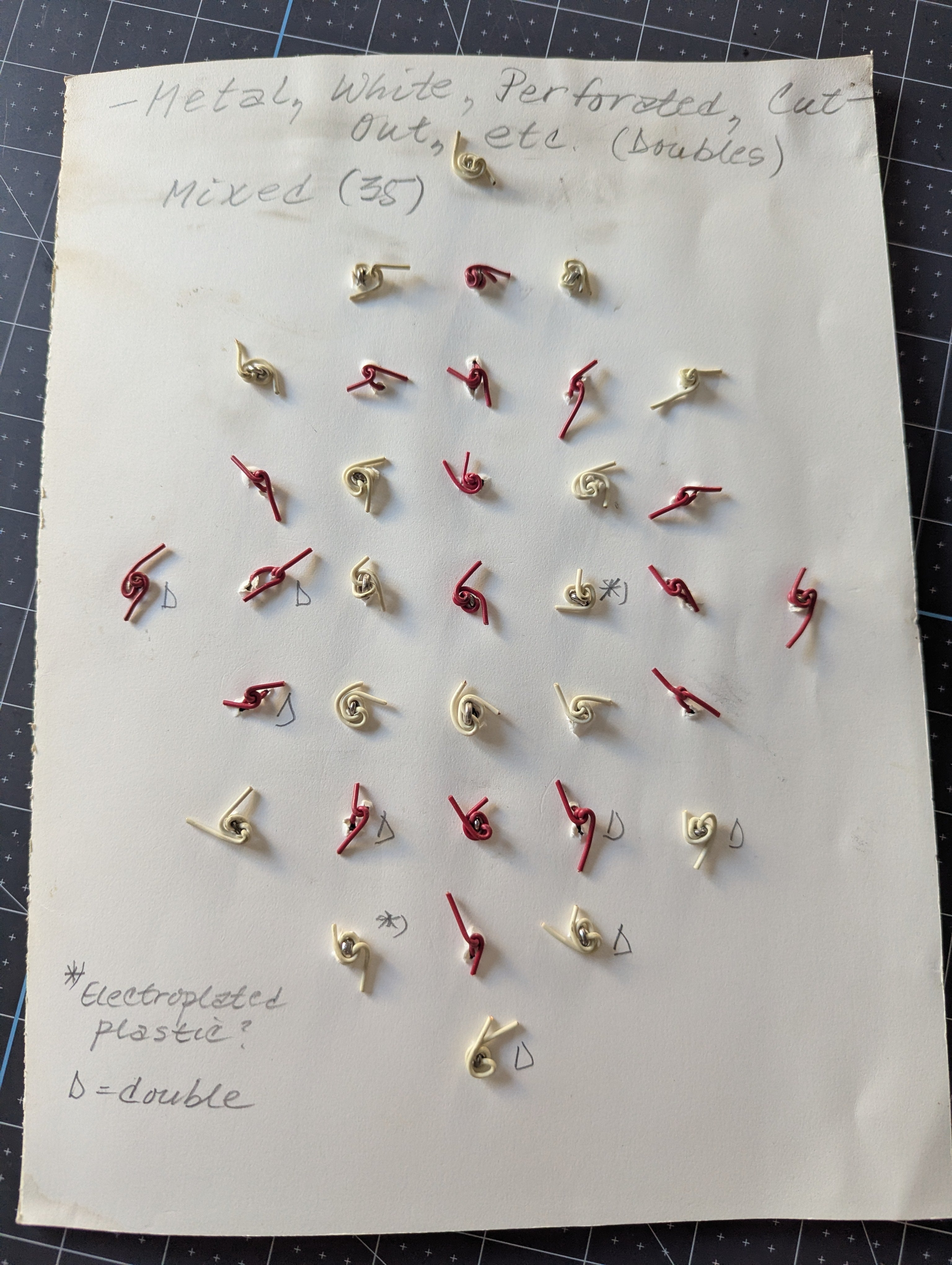 The reverse includes a note that says "Electroplated Plastic" with some marked with an asterisk, these may not be metal.