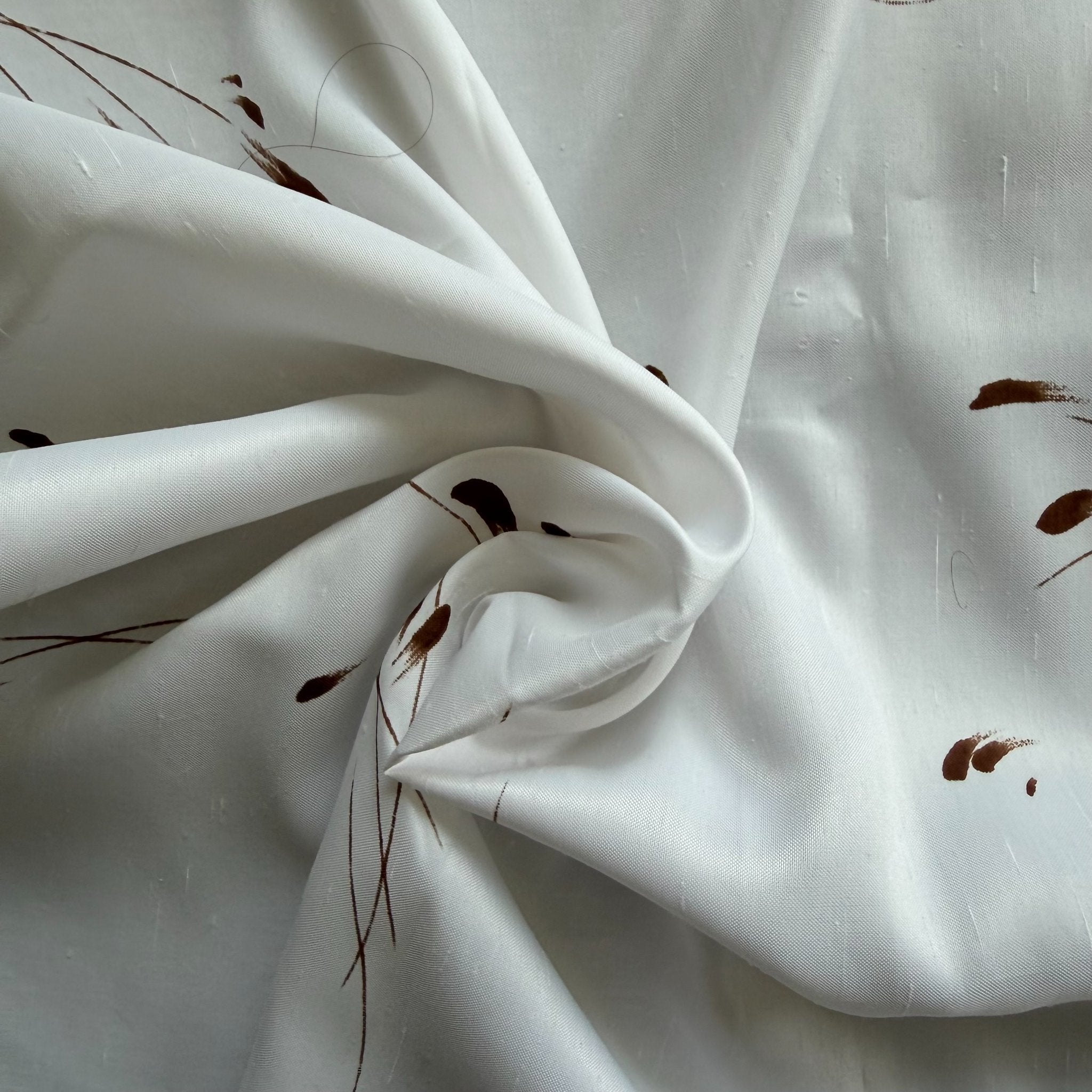 White with Brown Brushstrokes Fabric ~ 45" Wide ~ Synthetic ~ 2.67 YDS ~ Abstract