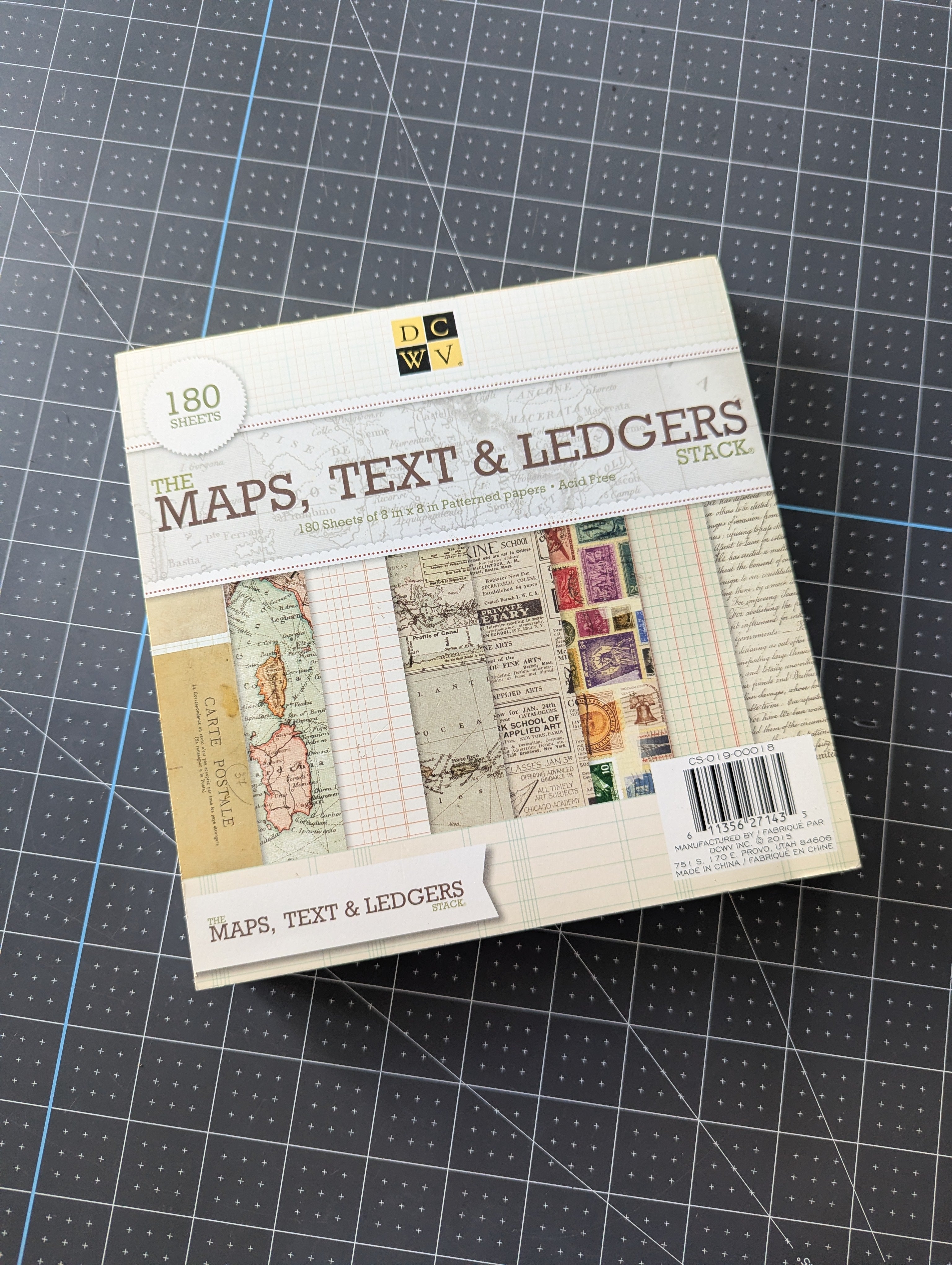 Maps, Text & Ledgers Paper Stack by DCWV - 8 x 8 Sheet Paper Pad