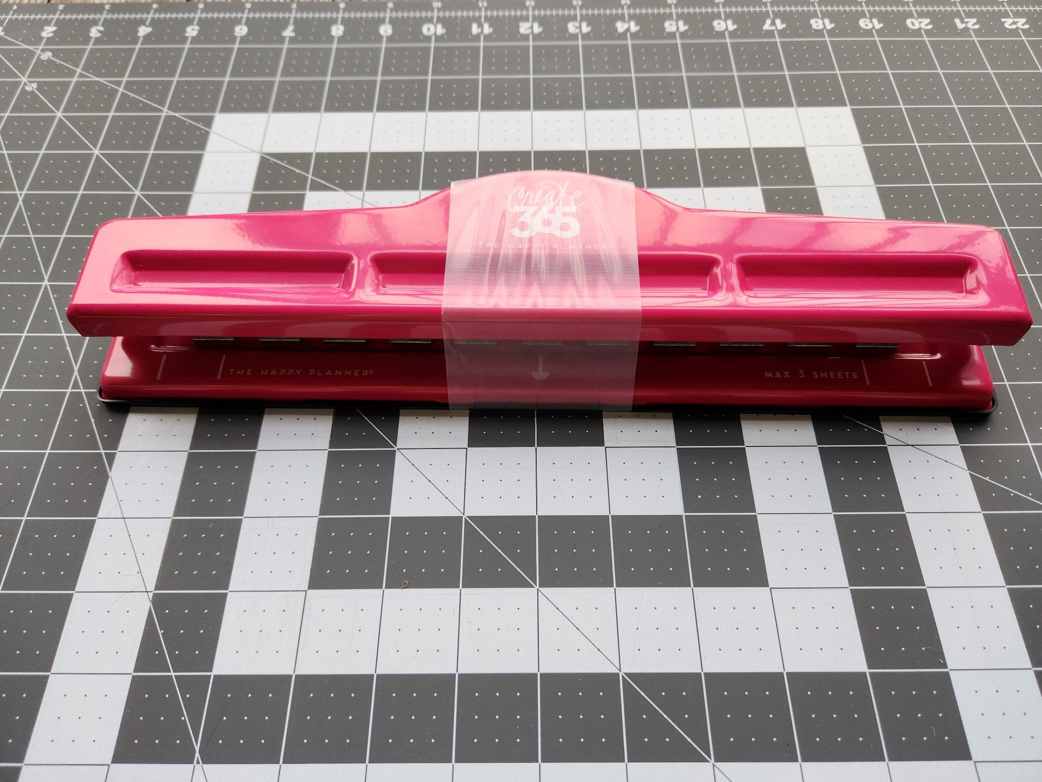 Pre-owned but appears to be unused. Designed to fit 8.5" x 11" sheets into Big Happy Planners. It is not intended to punch laminate or adhesive.