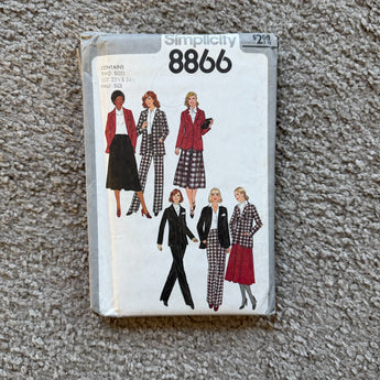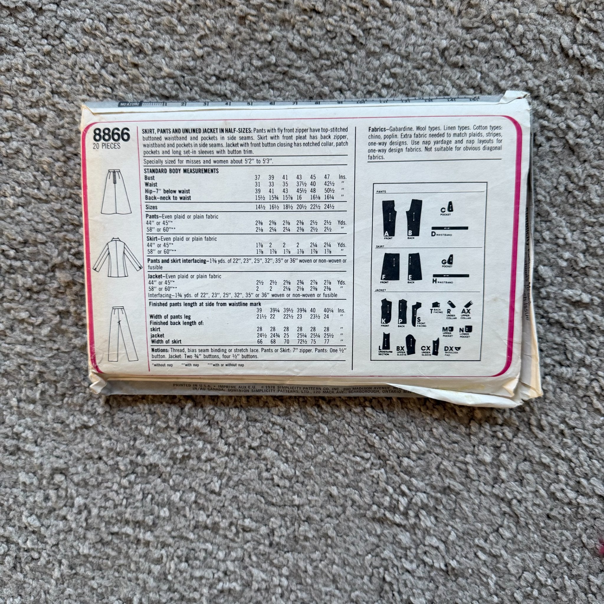 1978 ~ Simplicity #8866 ~ Skirt, Pants and Unlined Jacket in Half-Sizes ~ Size 22.5 & 24.5 ~ Bust 45-47"