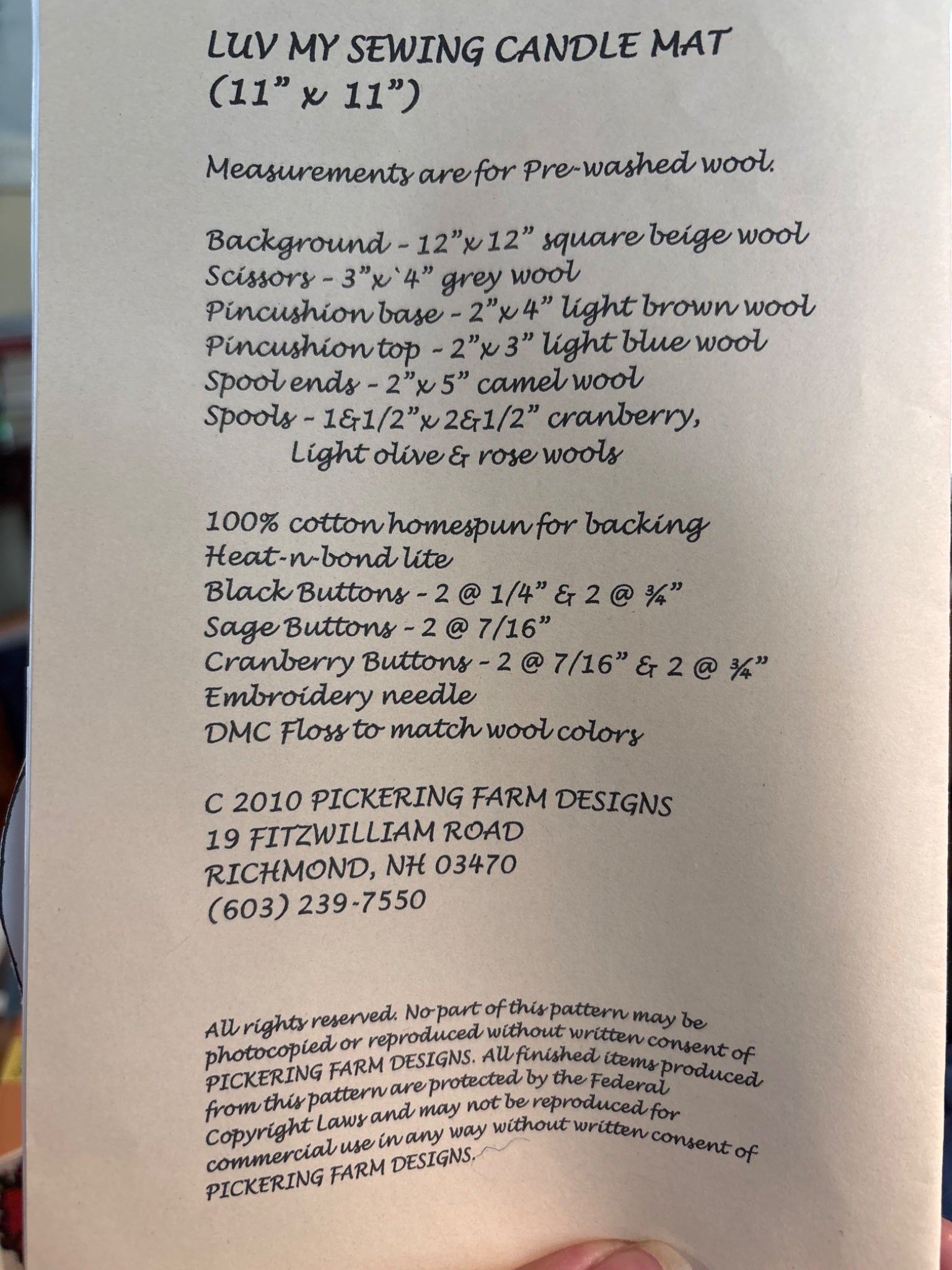 Candle mat appliqué sewing pattern