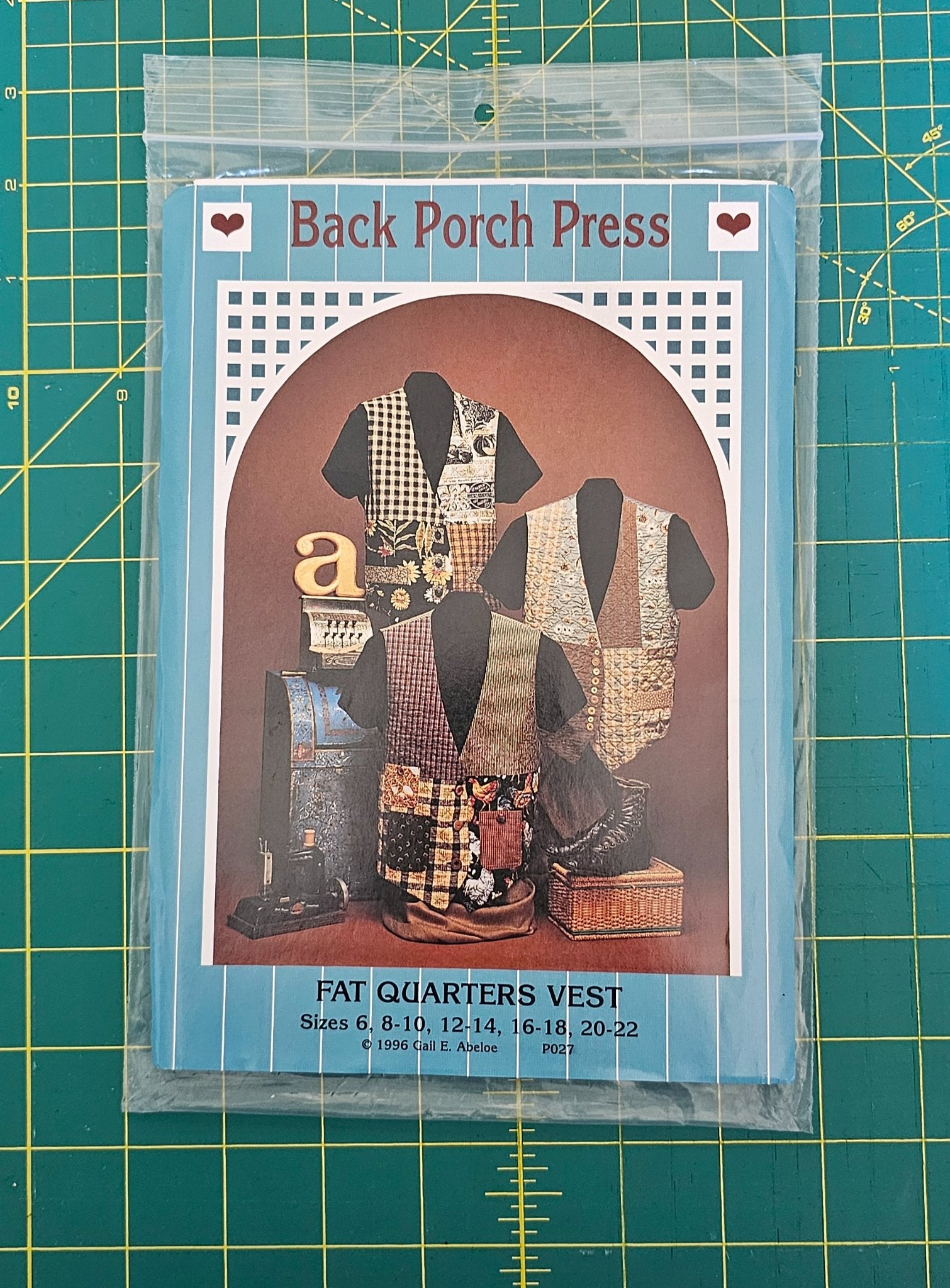 Sewing Quilters Pattern Fat Quarters Vest Size 6 8-10 12-14 16-18 20-22