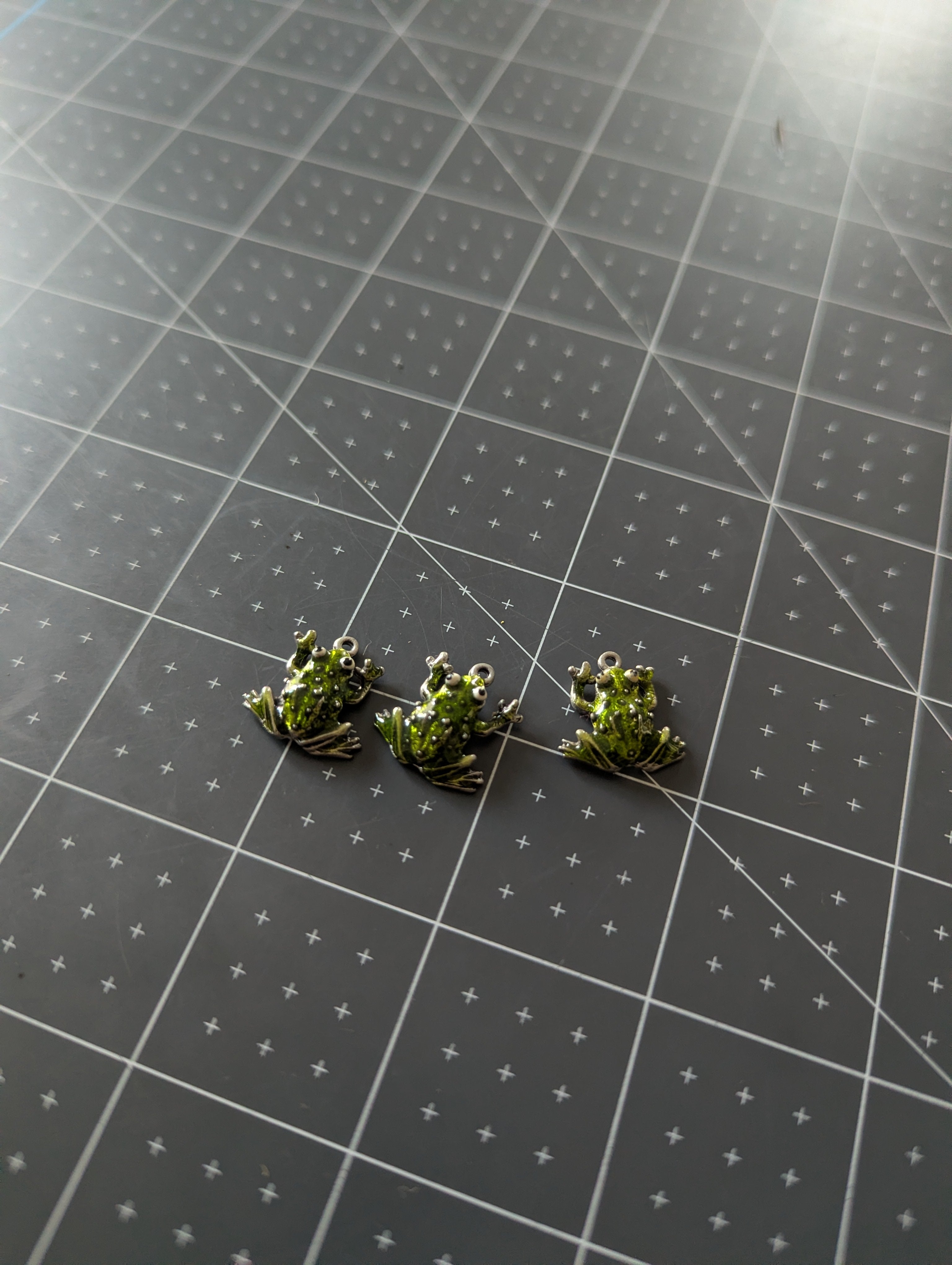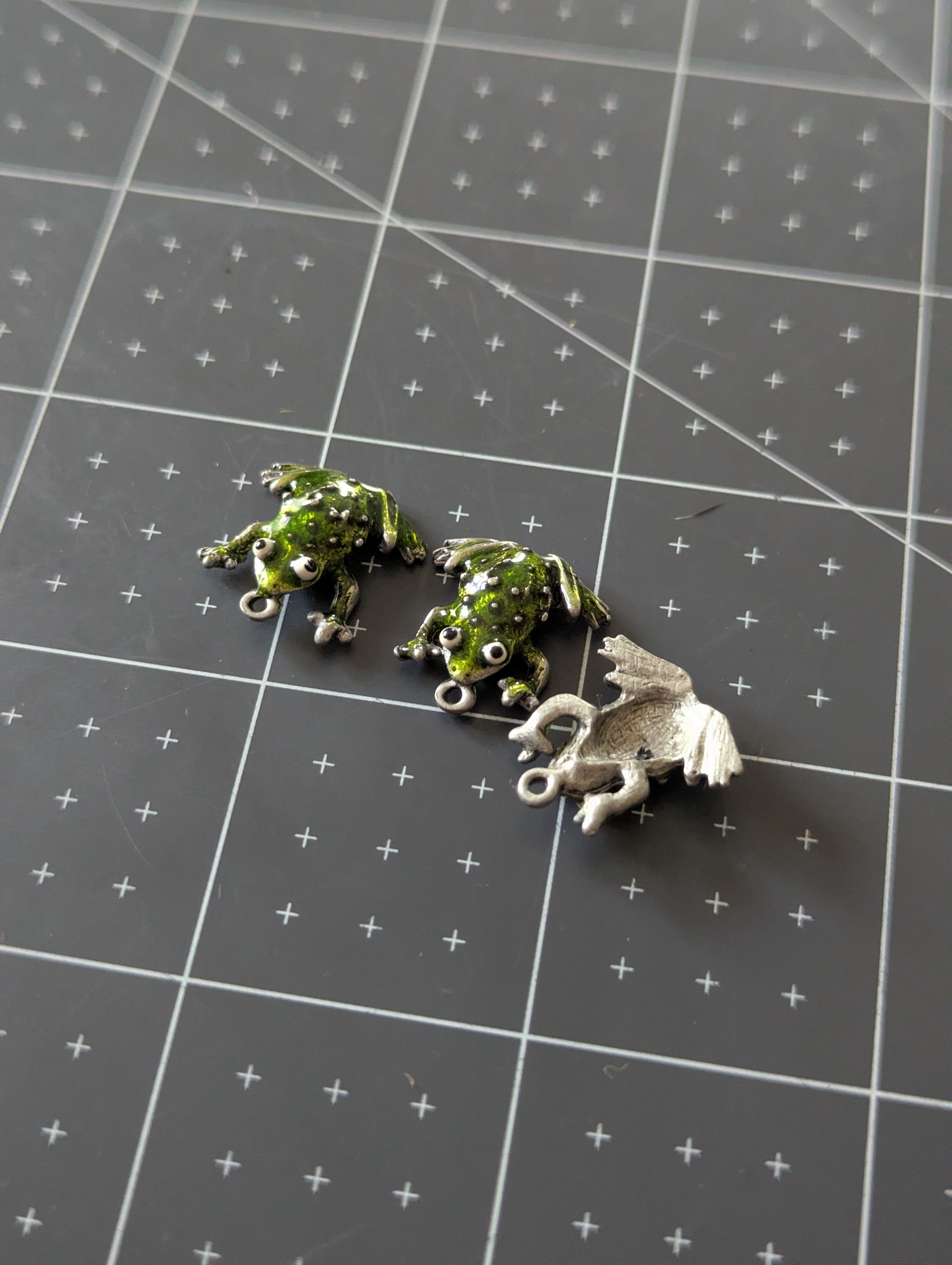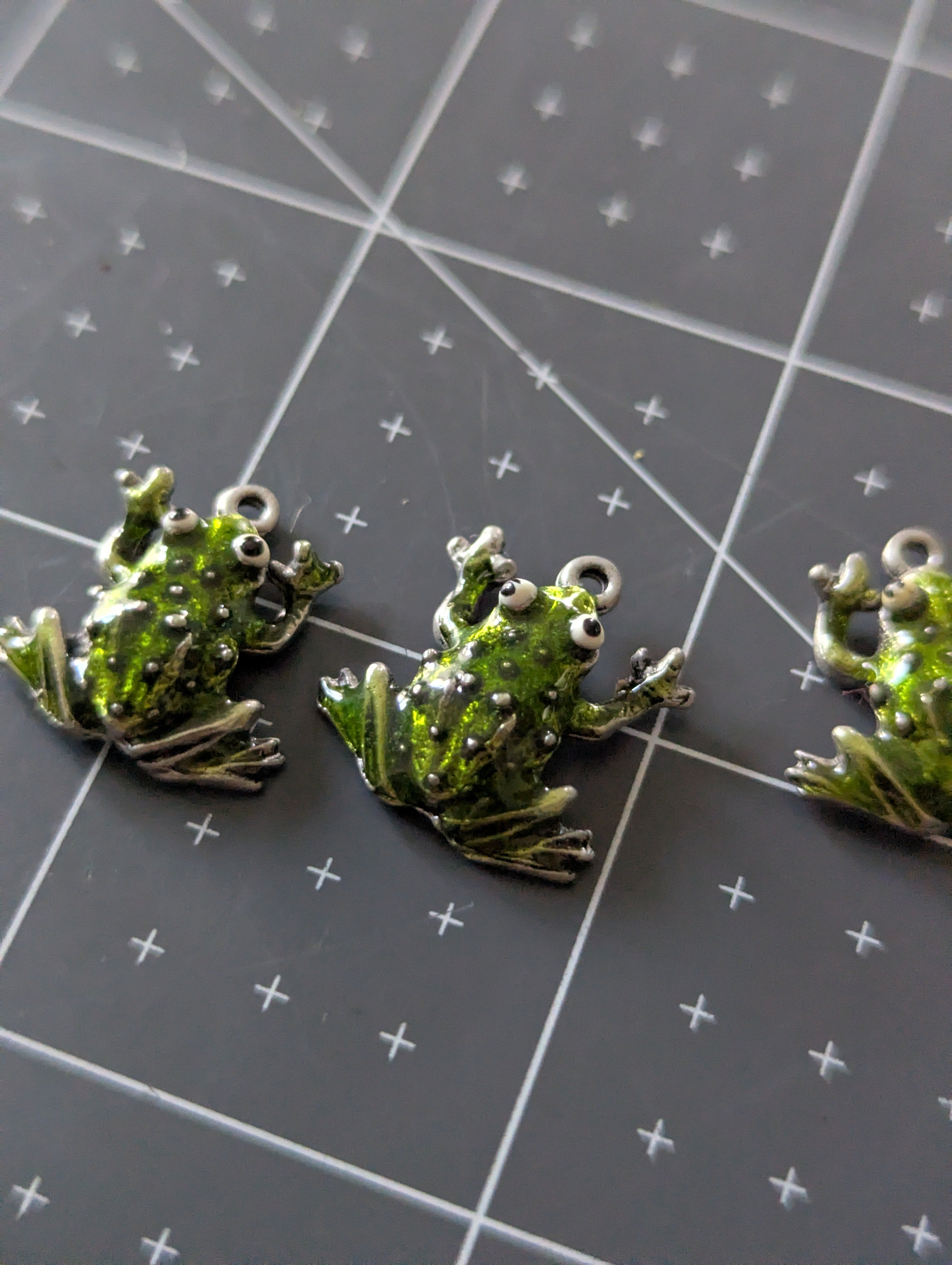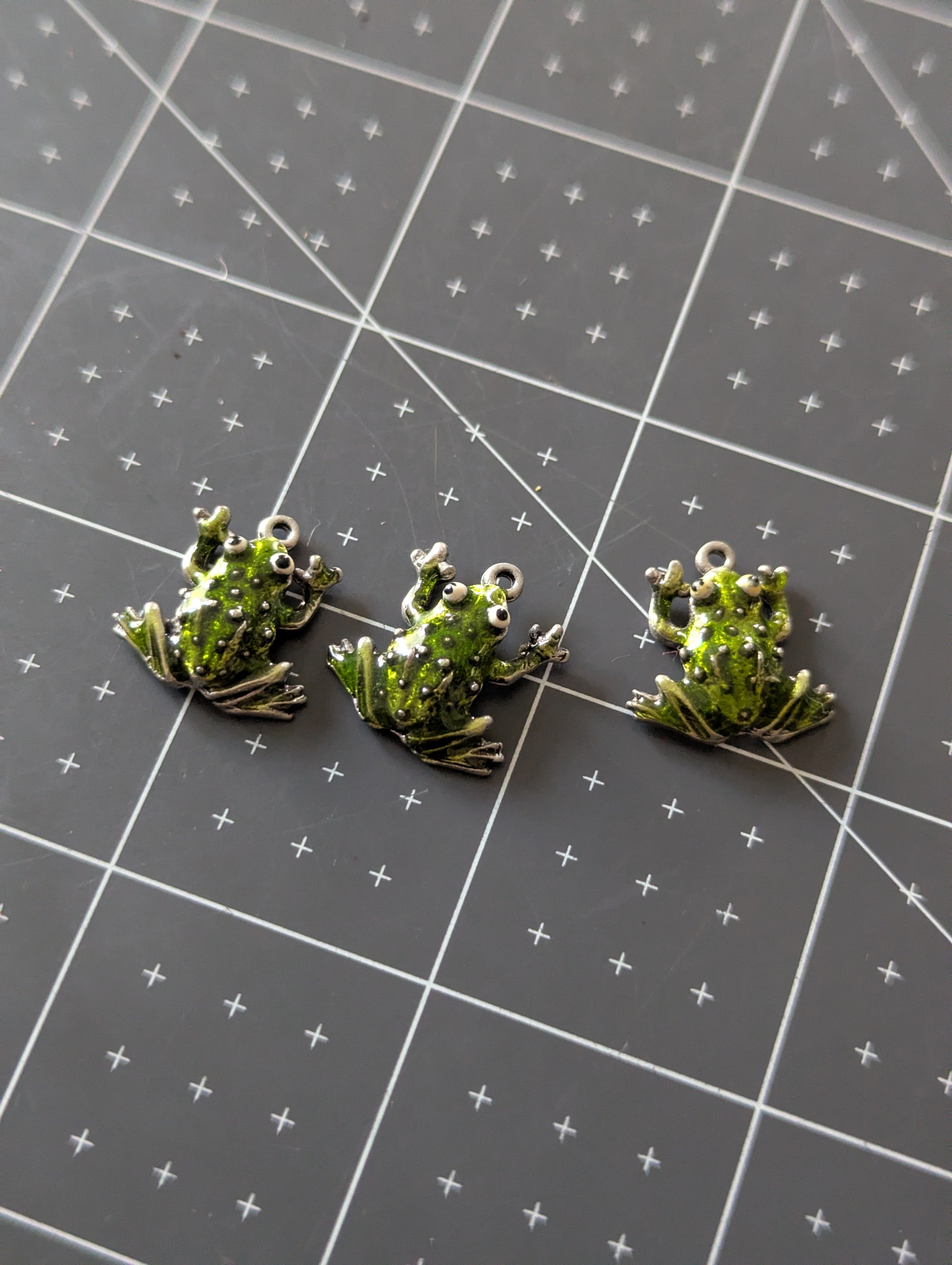 3pc Pewter Enameled Frog Charm Set