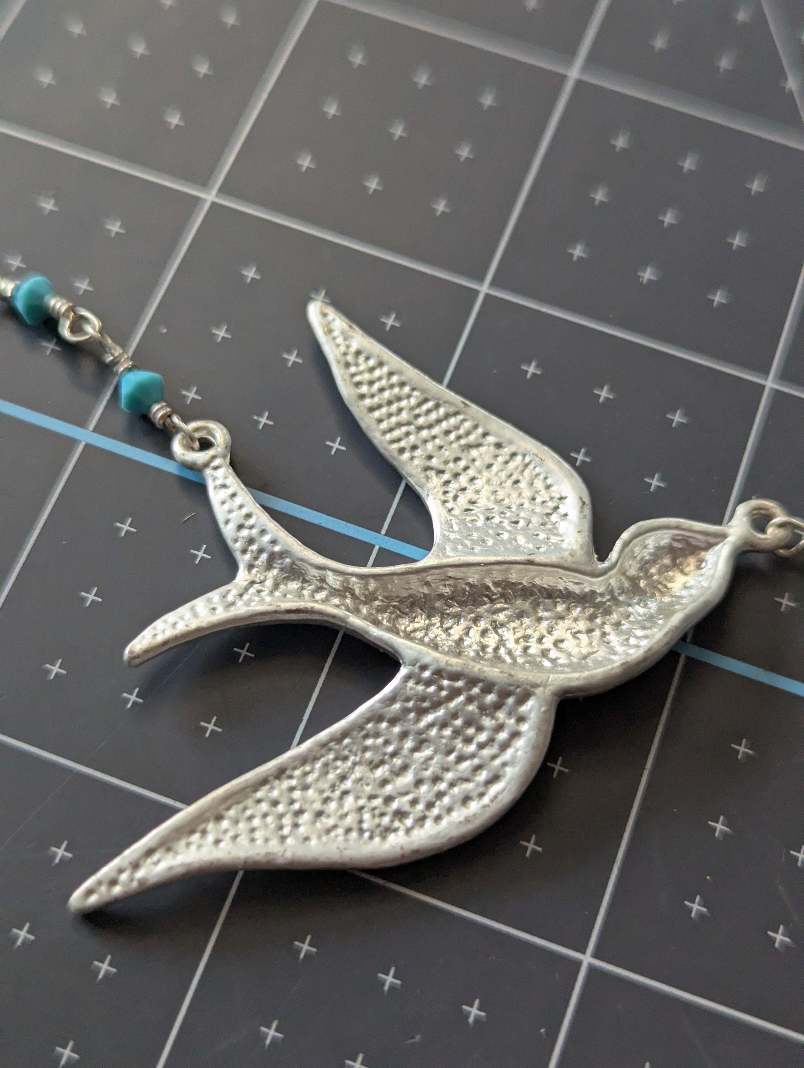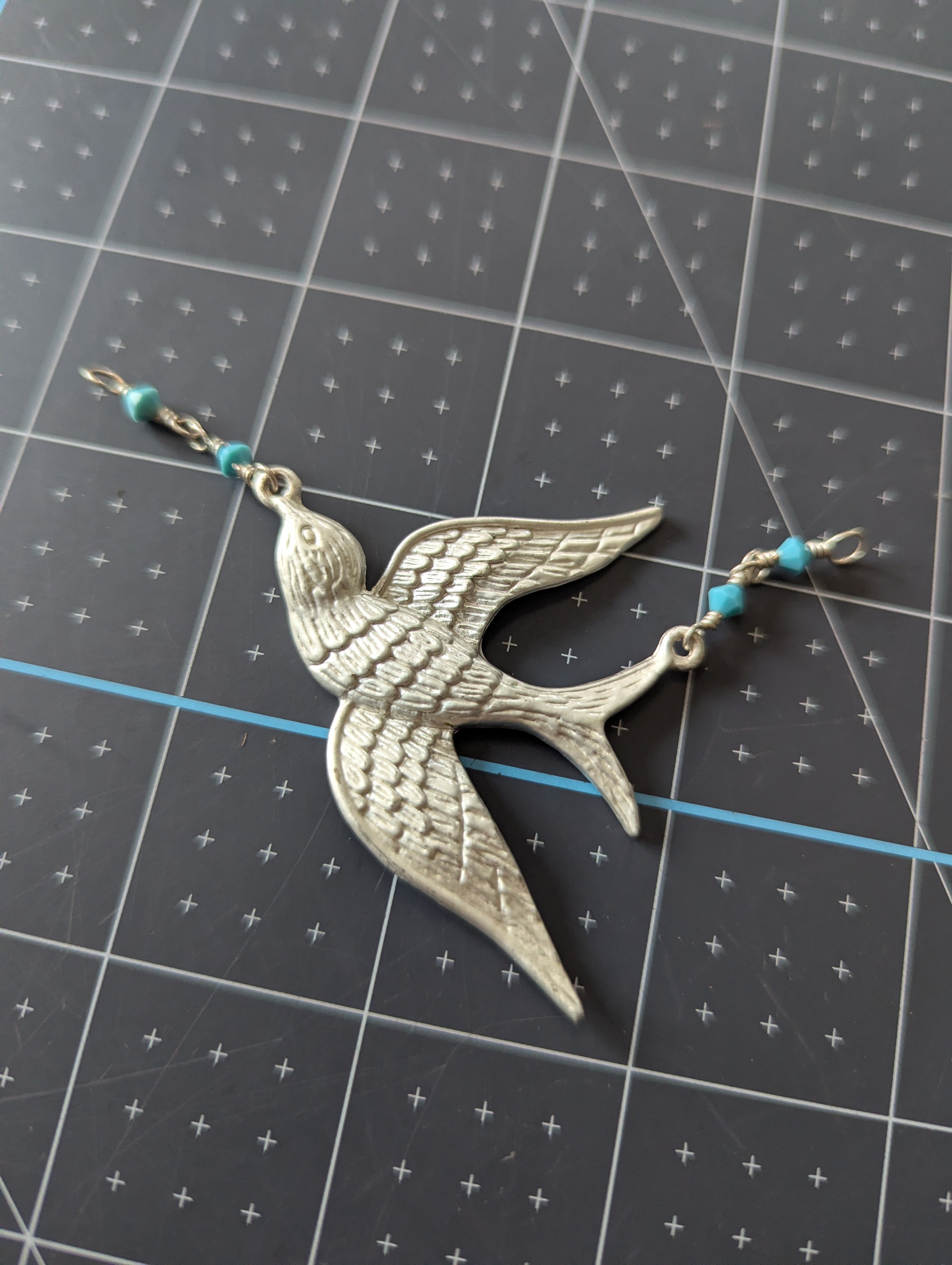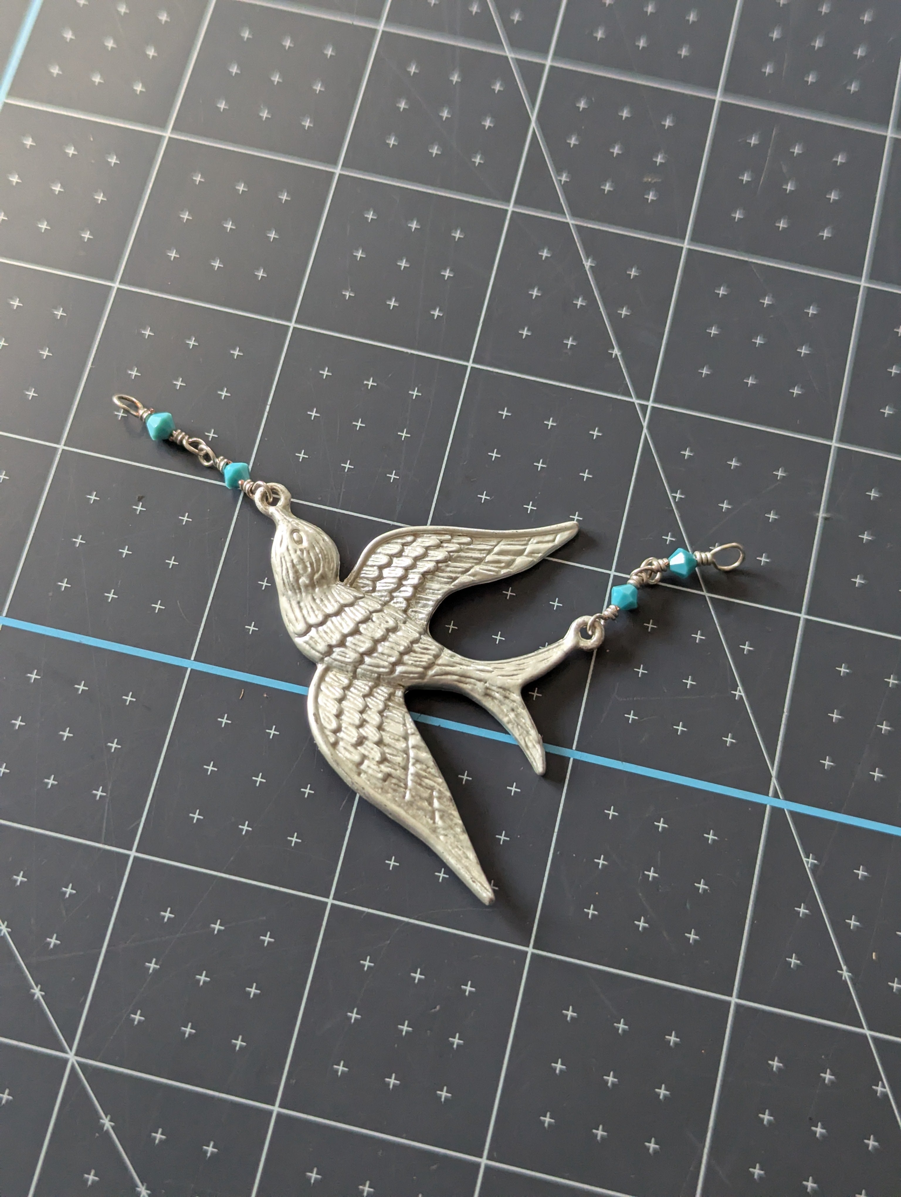 90s Metal Sparrow Pendant with Handmade Chain Starter