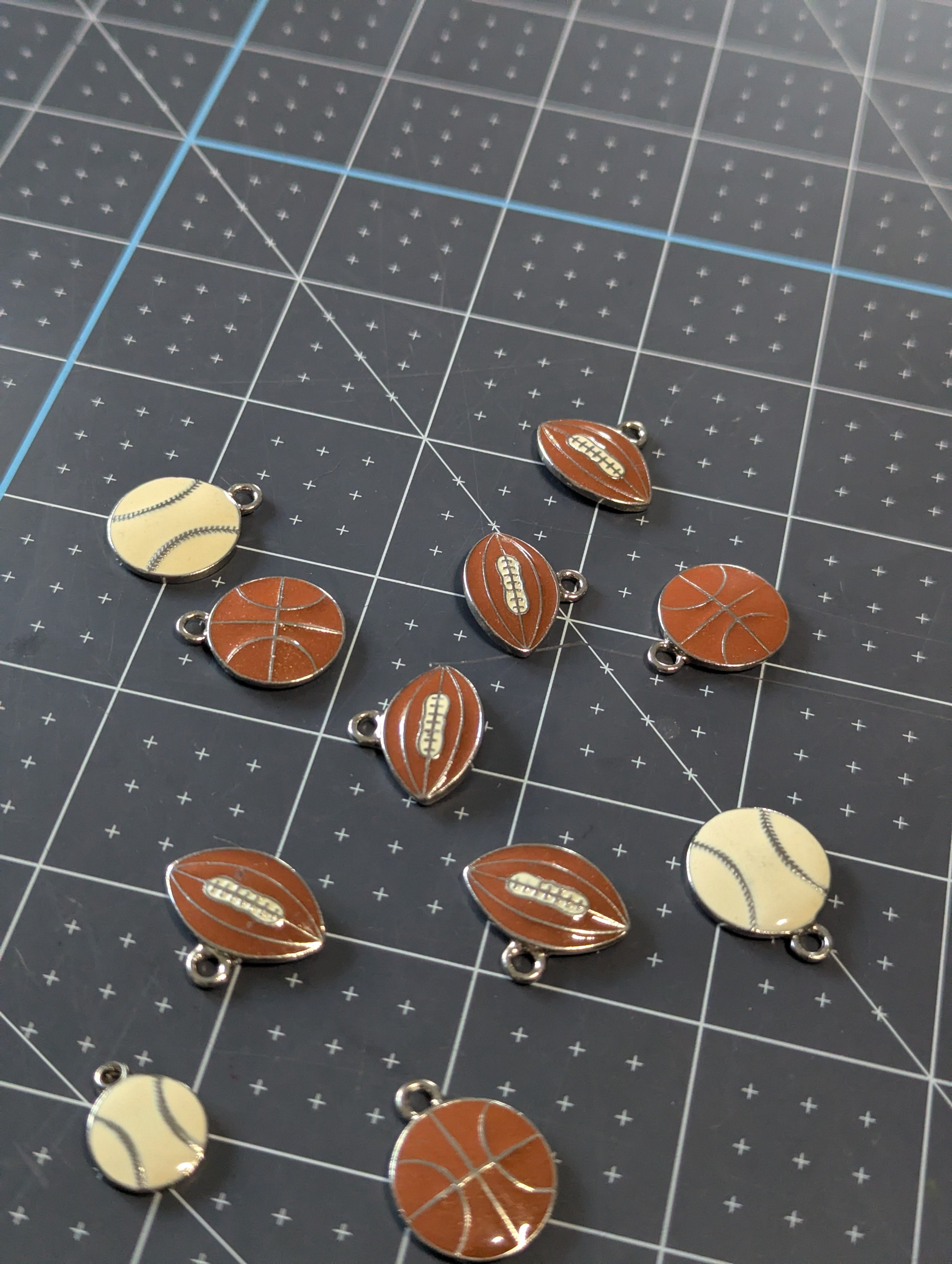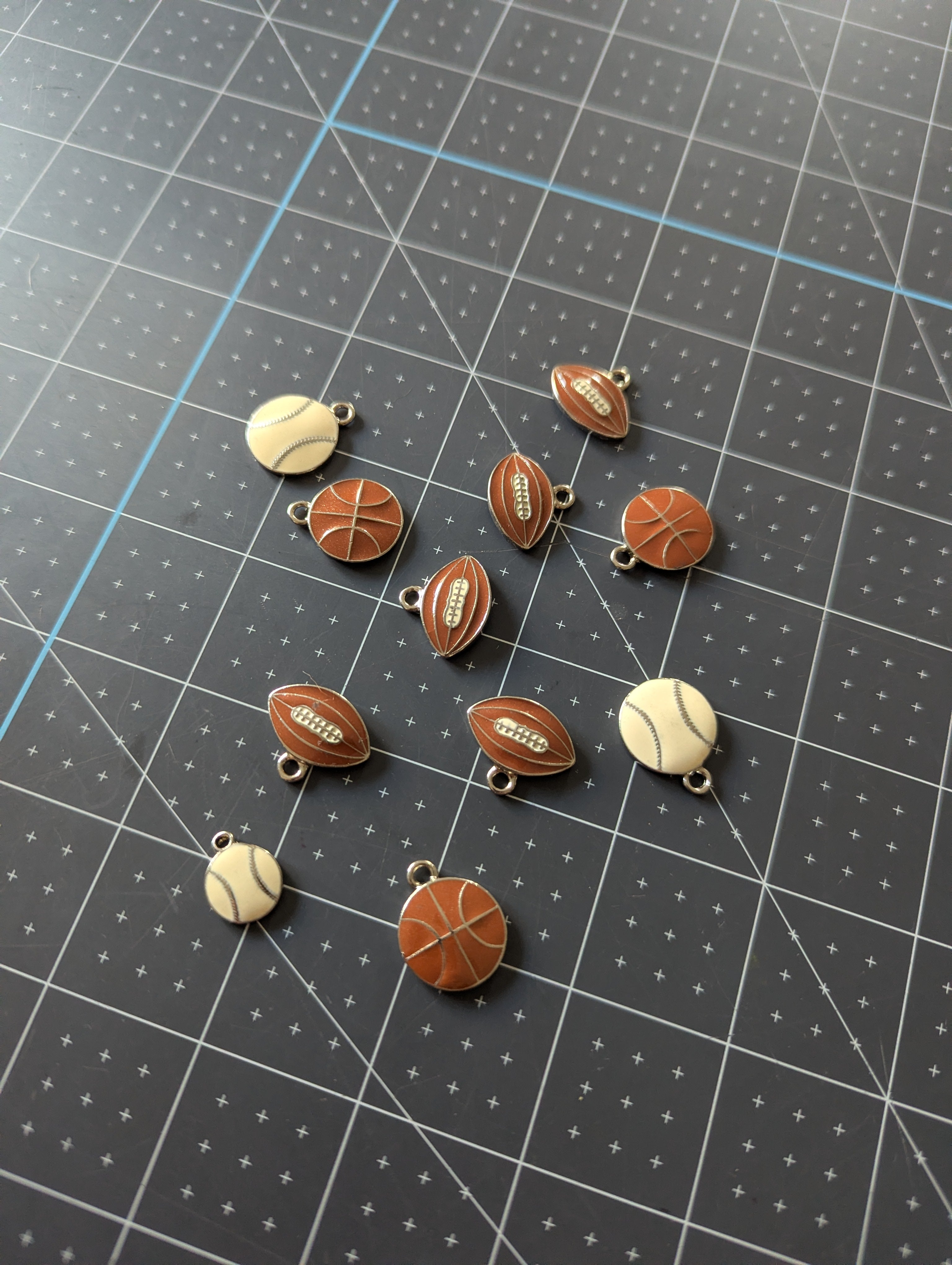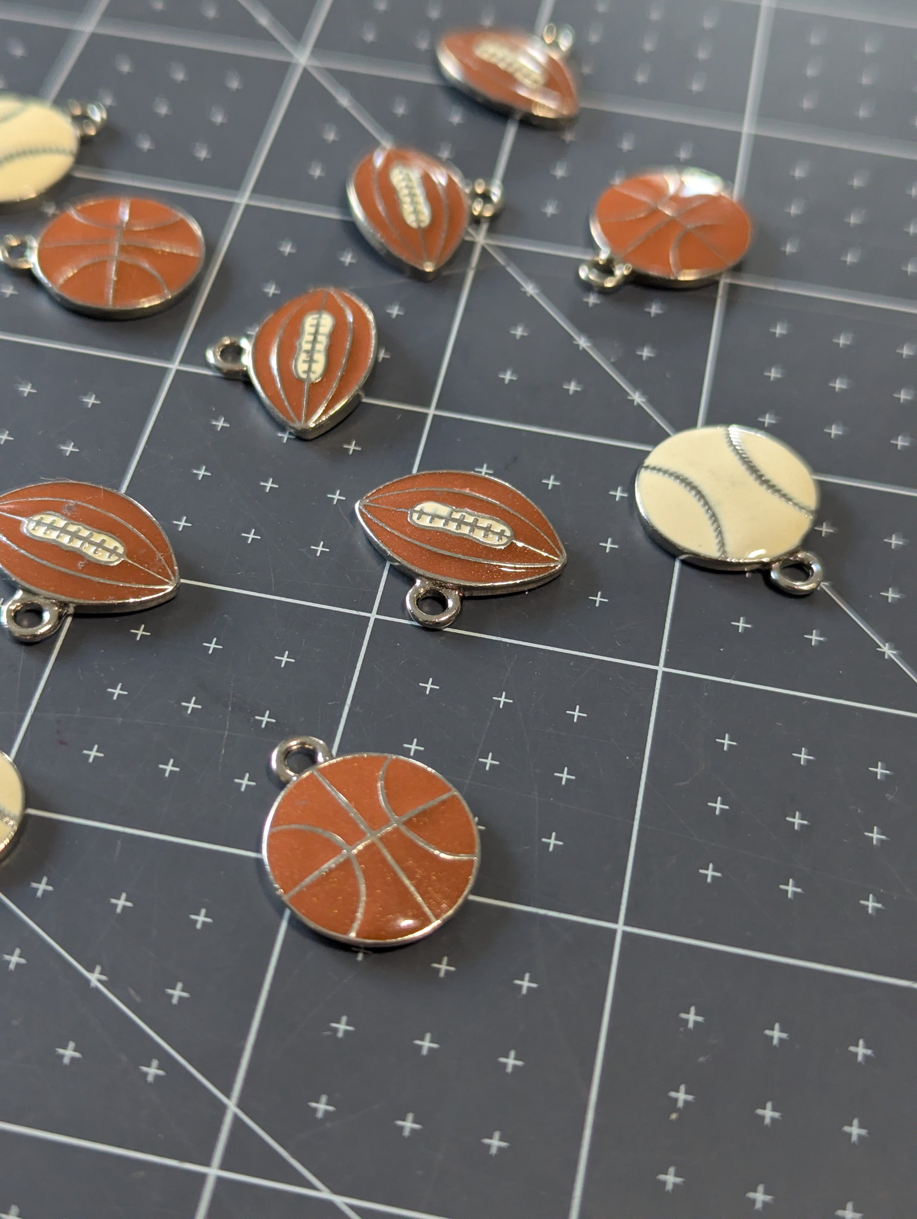 Enamel Sports Charms: Footballs, Basketballs & Baseballs