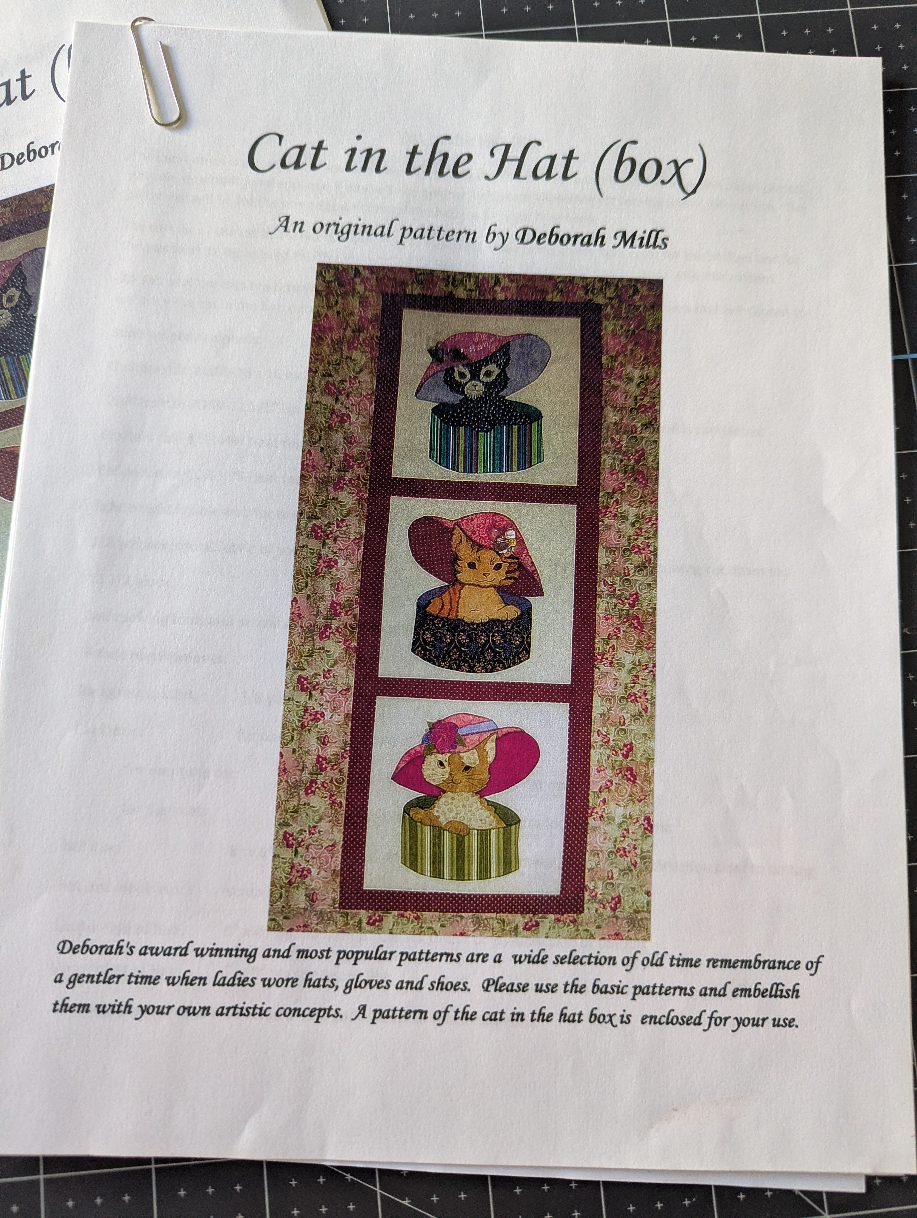 Cat in the Hat (box) Original Paper Quilting Patterns - Sold Separately