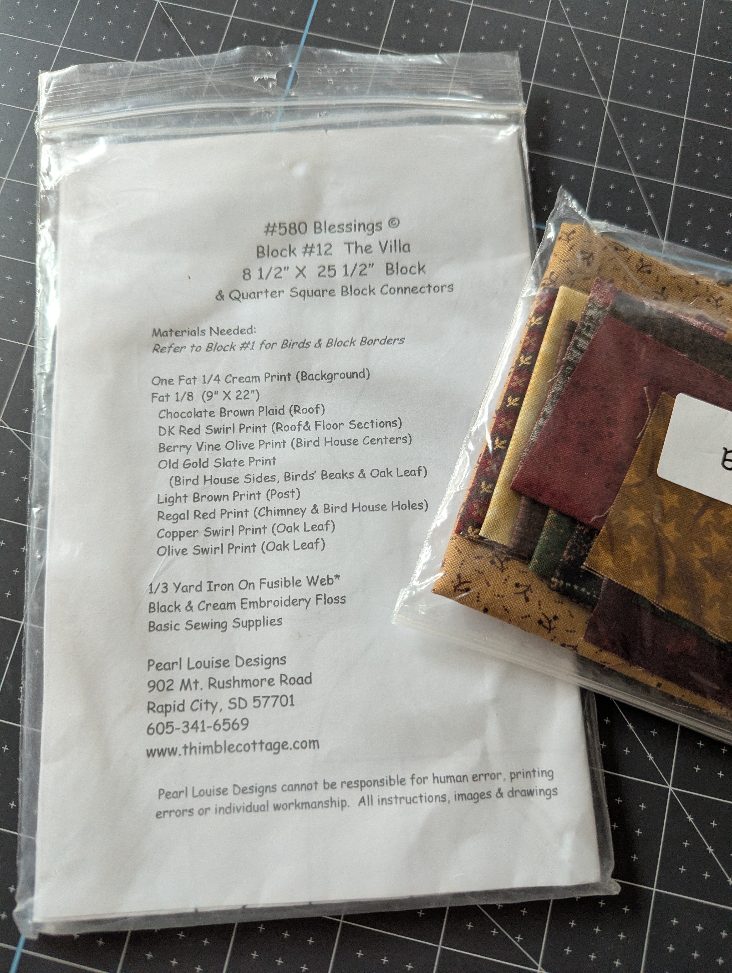 Pearl Louise Quilt Block Pattern #12: The Villa - with Fabric (2009)