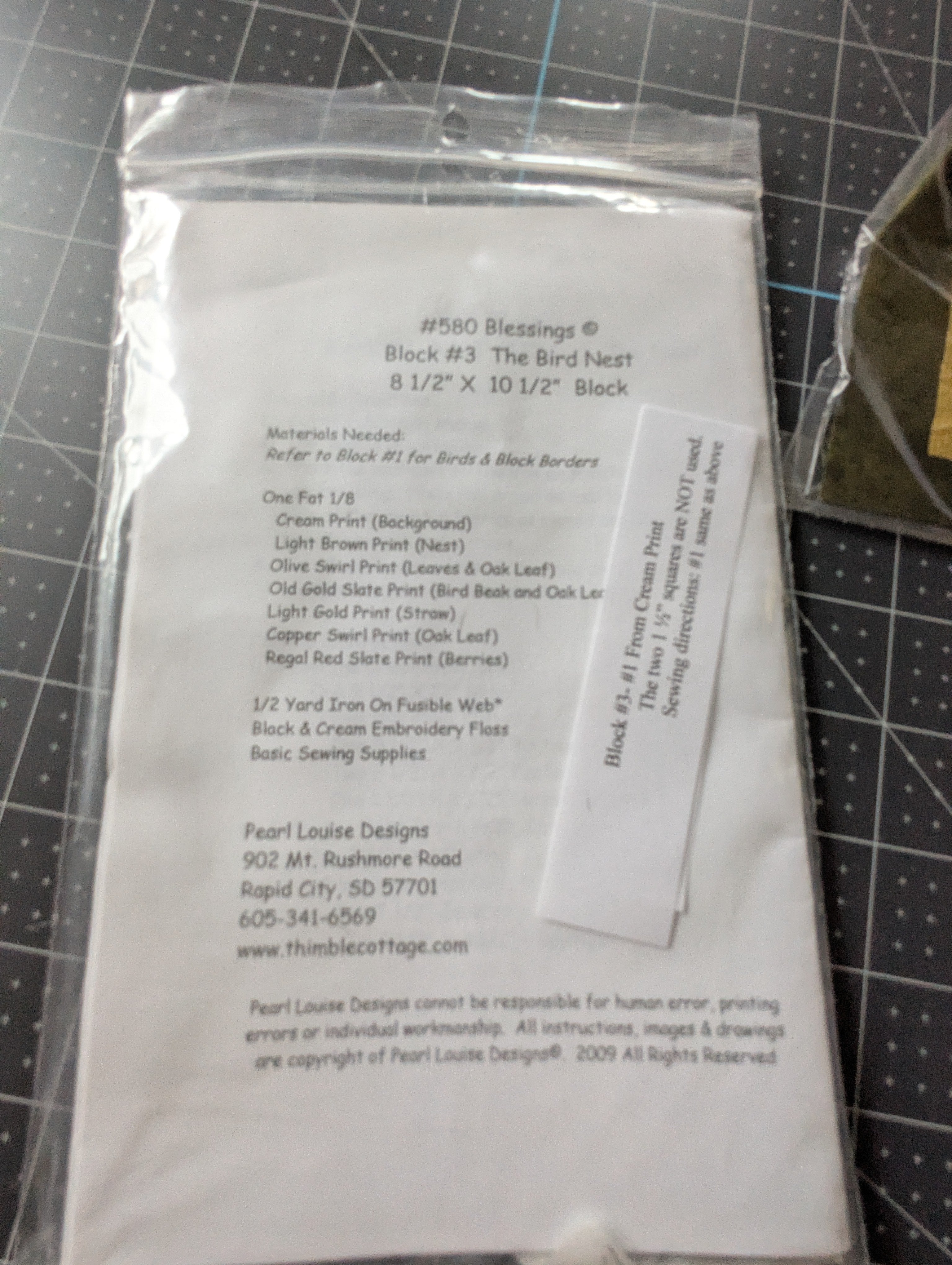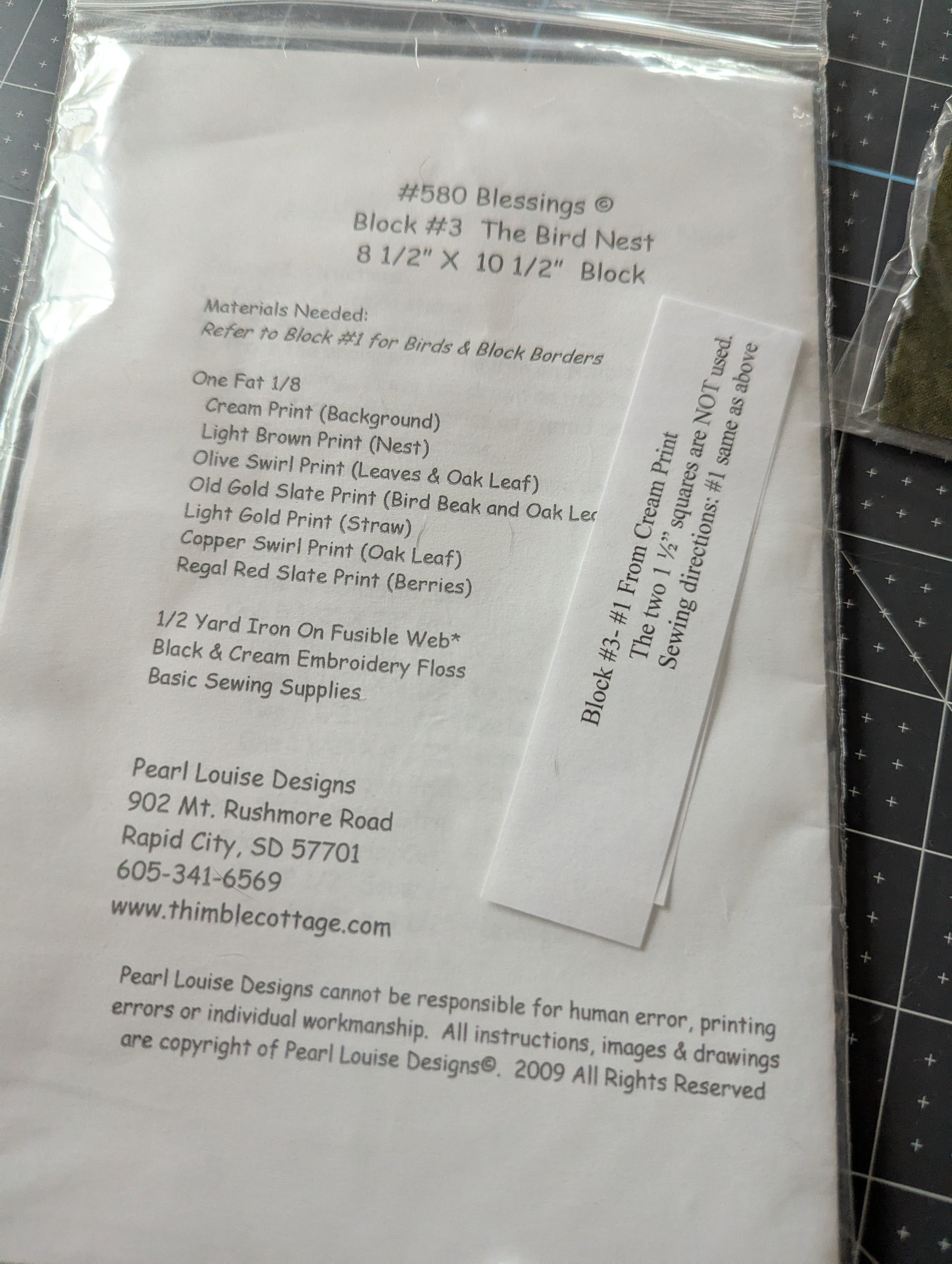 Pearl Louise Quilt Block Pattern #3: Bird Nest - with Fabric (2009)