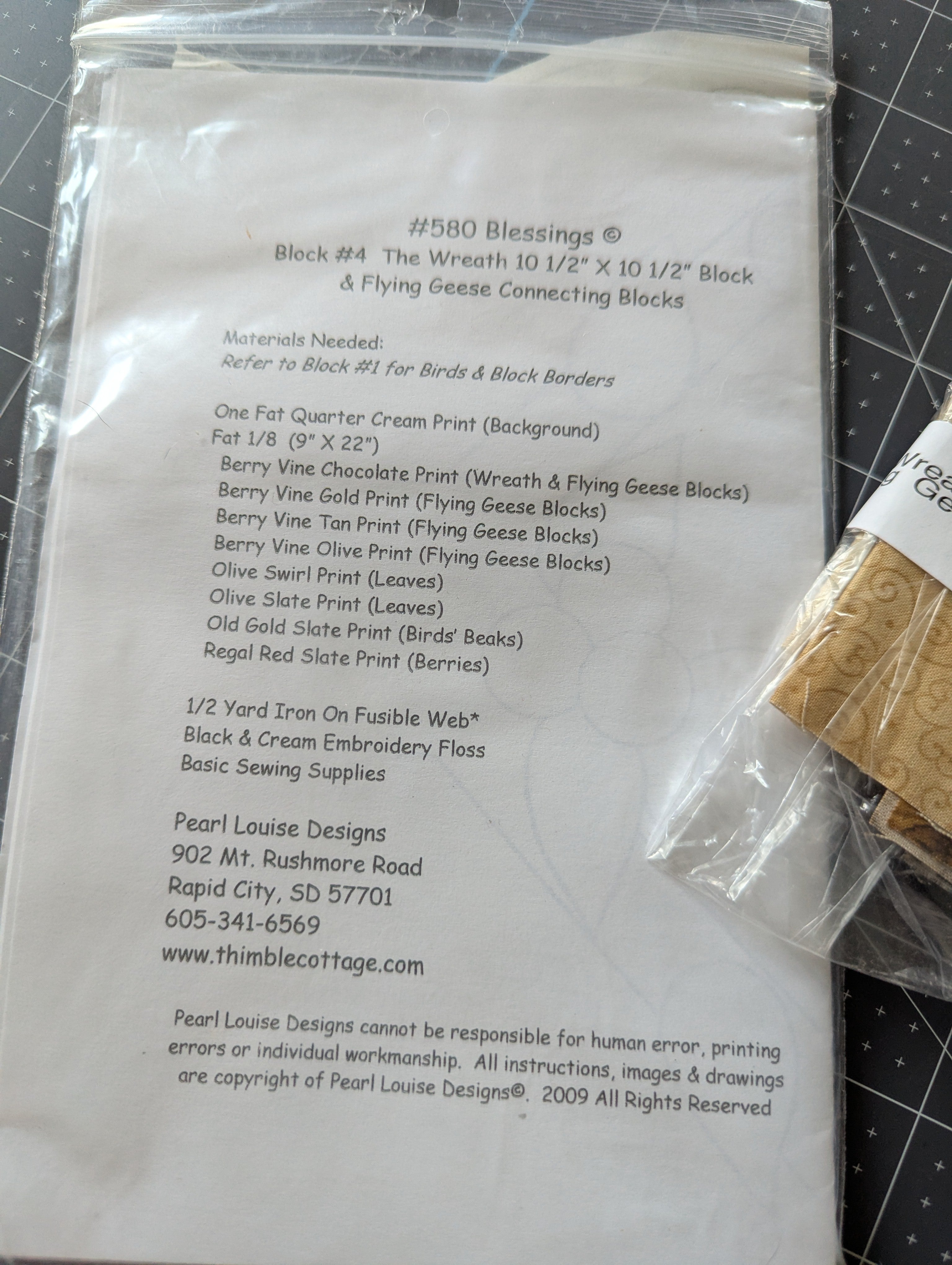 Pearl Louise Quilt Block Pattern #4: The Wreath - with Fabric (2009)