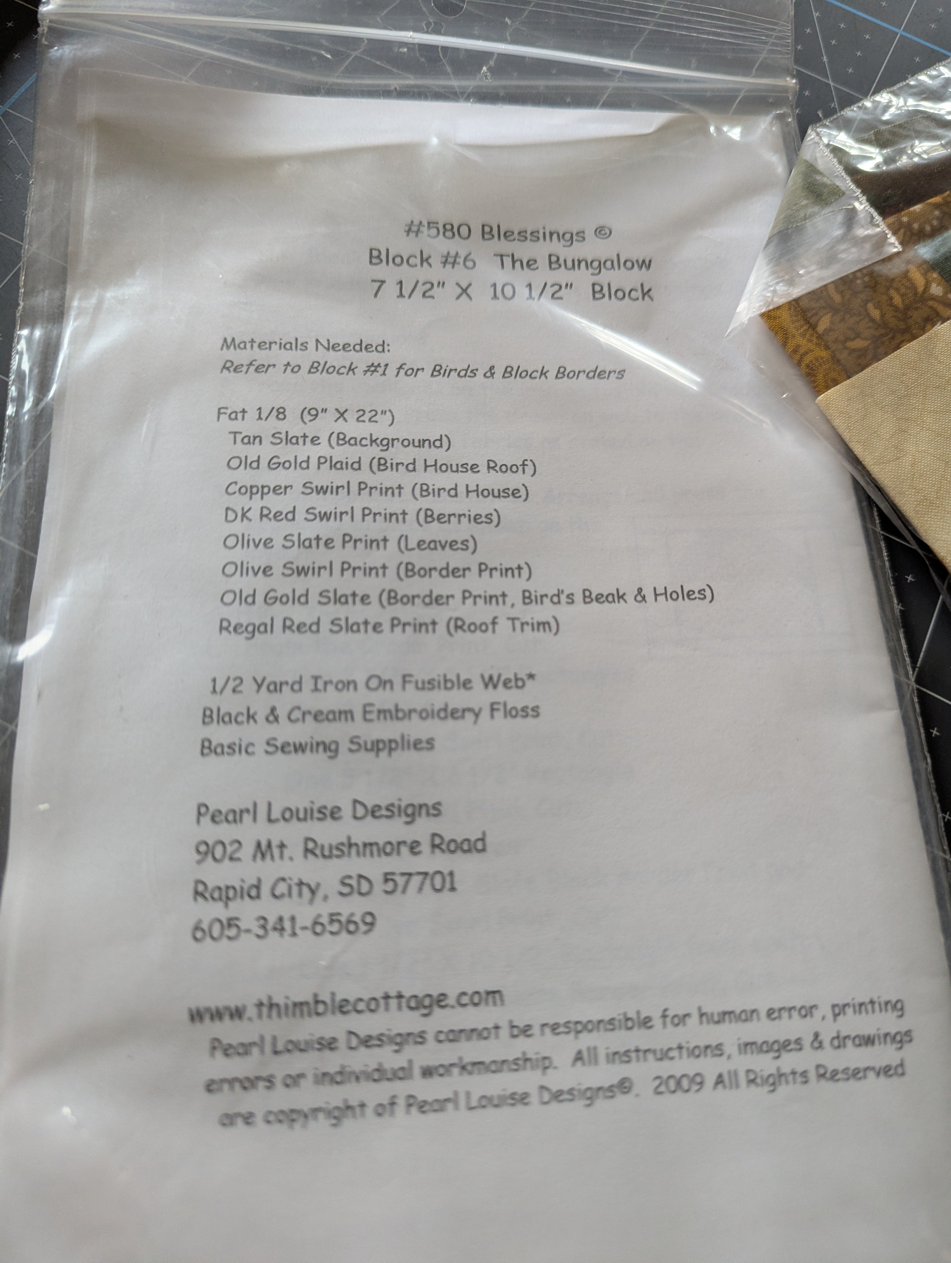 Pearl Louise Quilt Block Pattern #6: The Bungalow - with Fabric (2009)