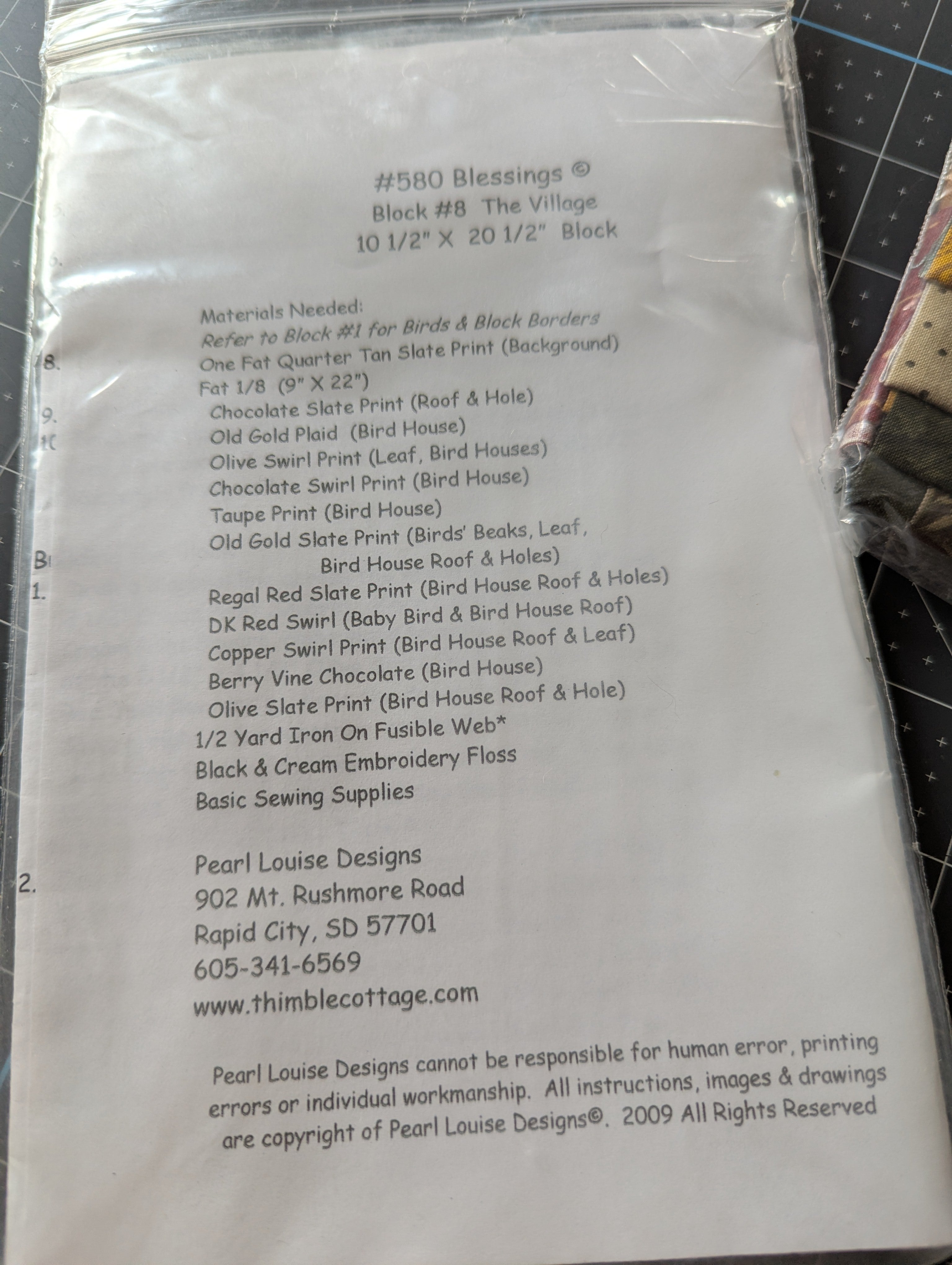 Pearl Louise Quilt Block Pattern #8: The Village - with Fabric (2009)