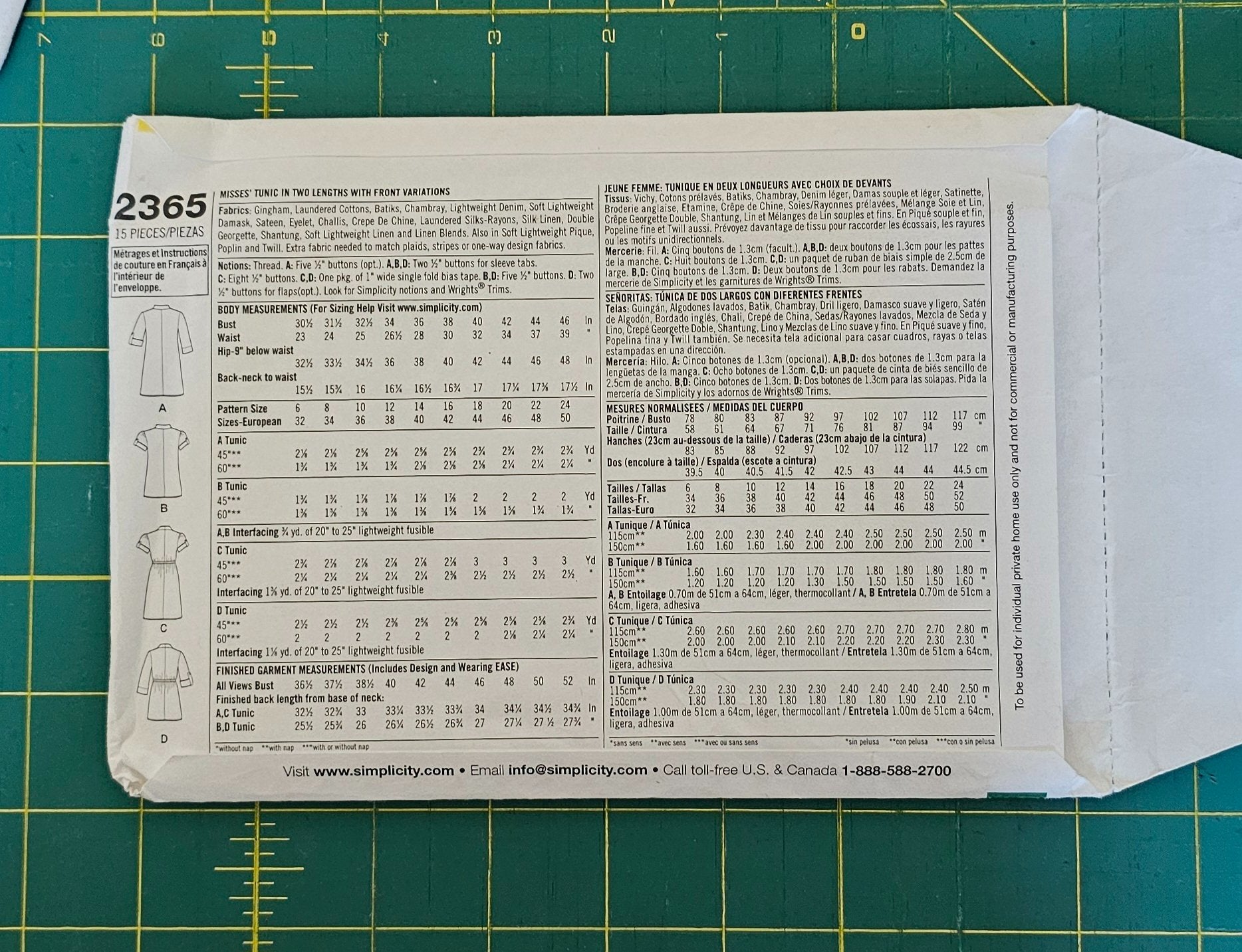 Sewing Pattern Misses Tunic Simplicity 2365 Size H5 6 8 10 12 14 Four Variations