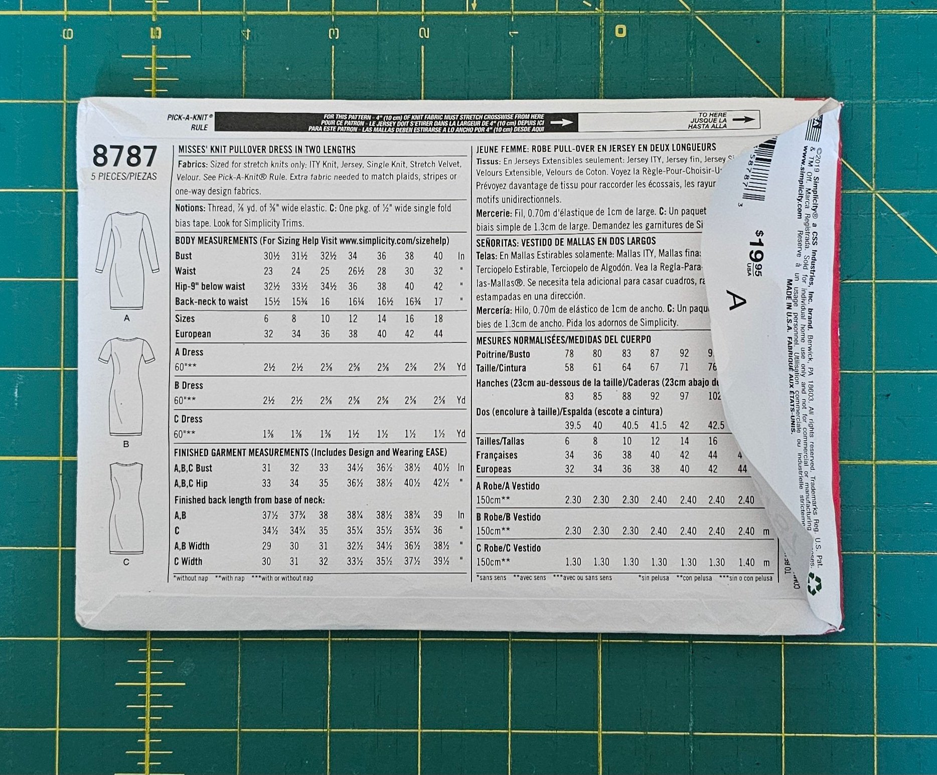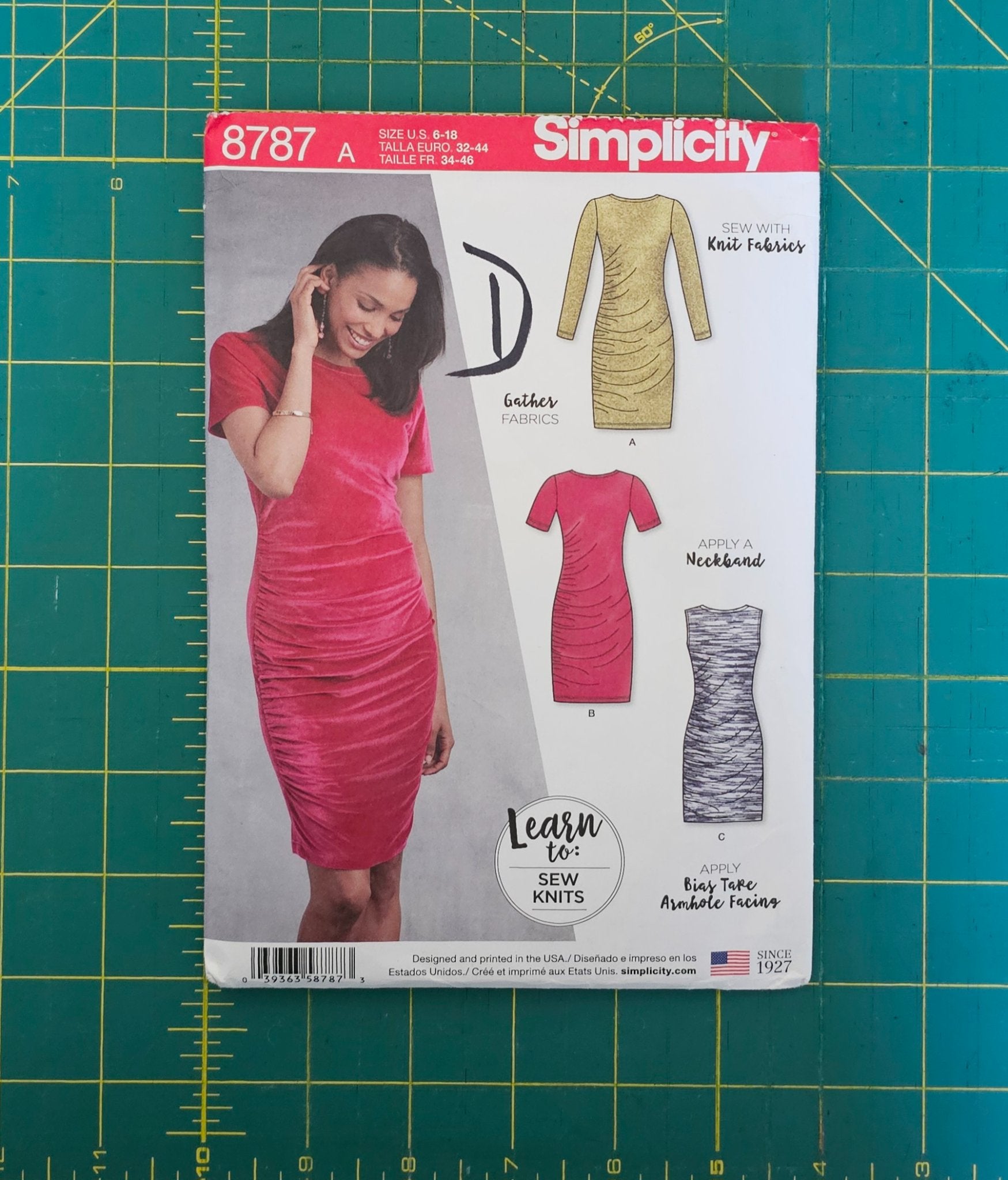 Sewing Pattern Simplicity 8787 size 8-16 Learn to Sew Knit Fabrics Gather Dress 3 Ways
