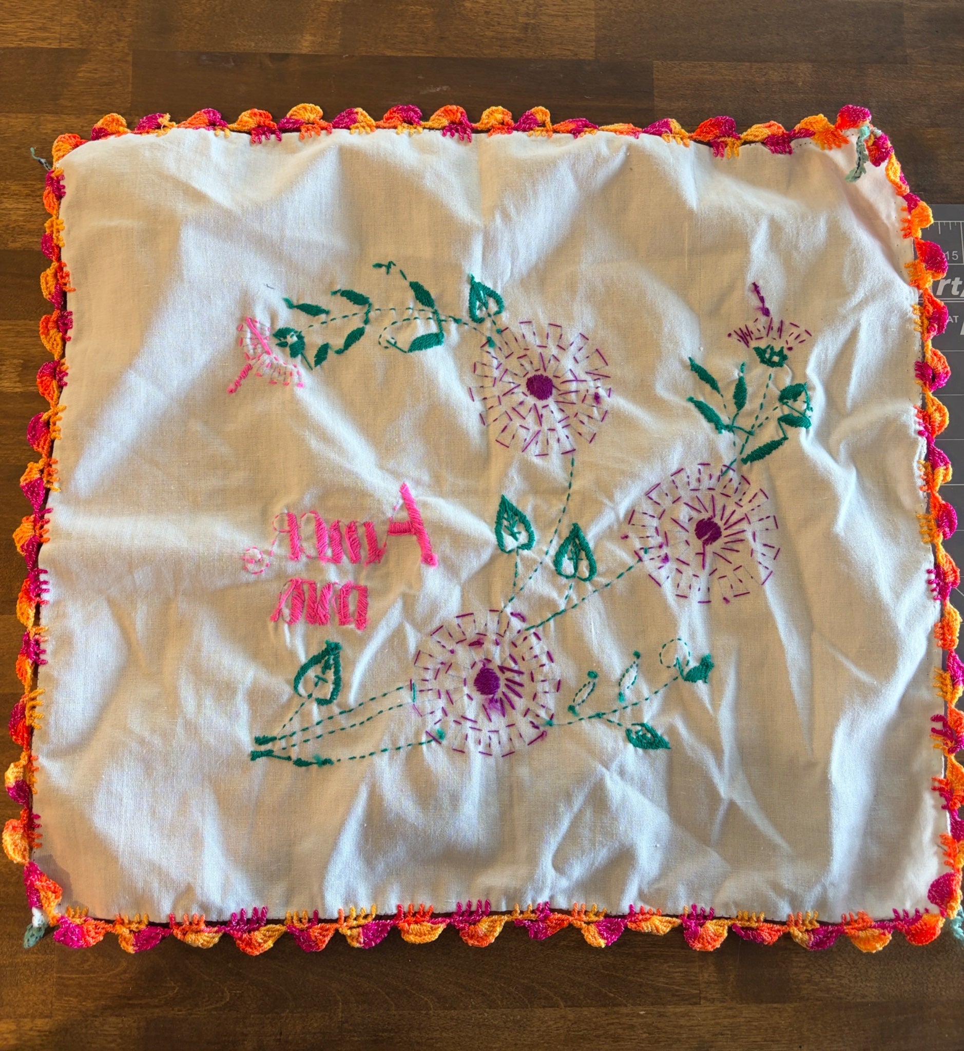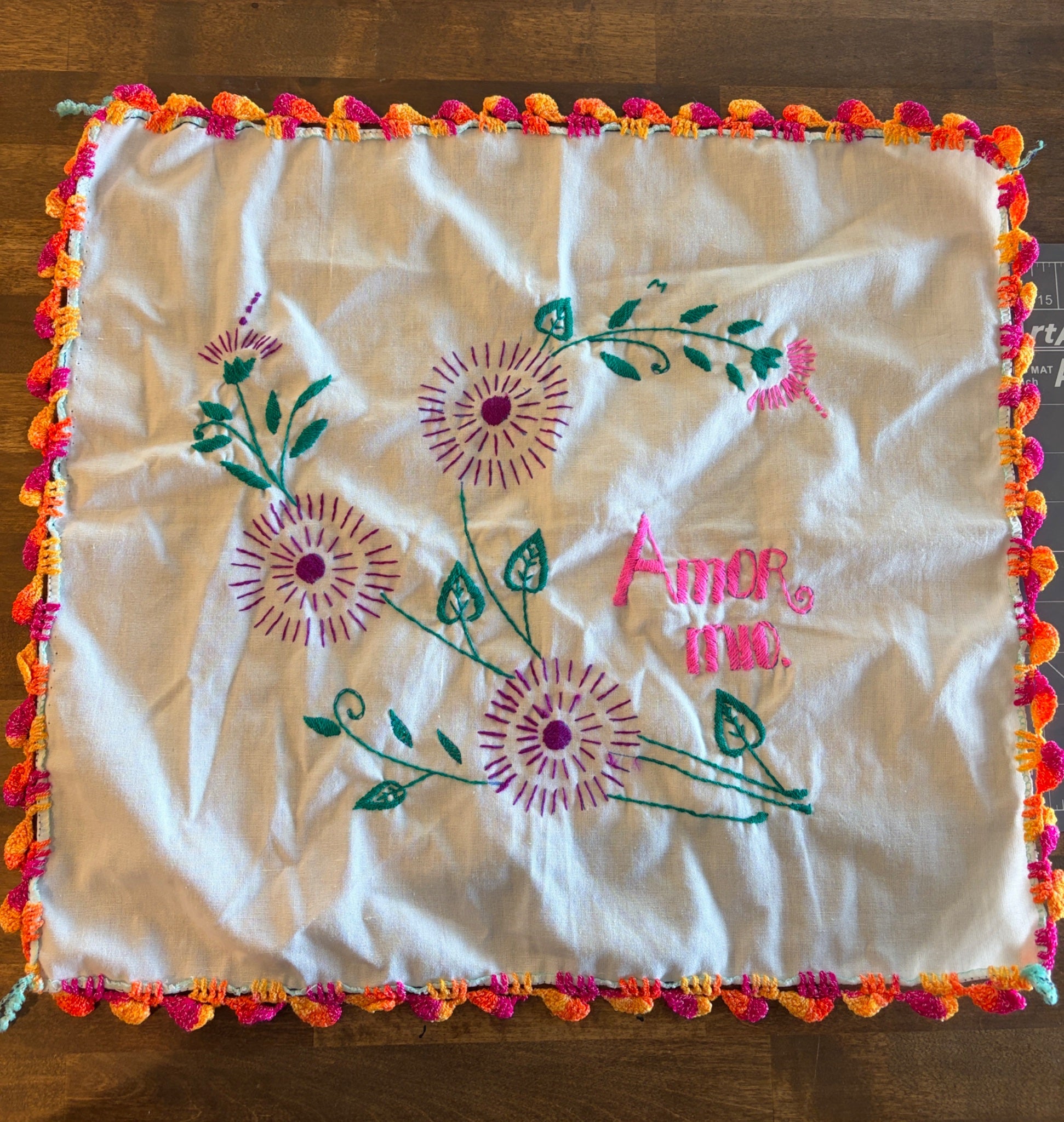 Colorful “Amor Mio” Embroidered Doily