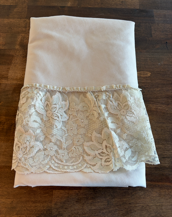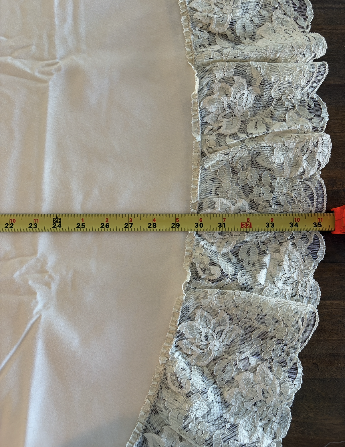 Off-White/Cream Round Table Cloth with Lace Trim - ReFabric